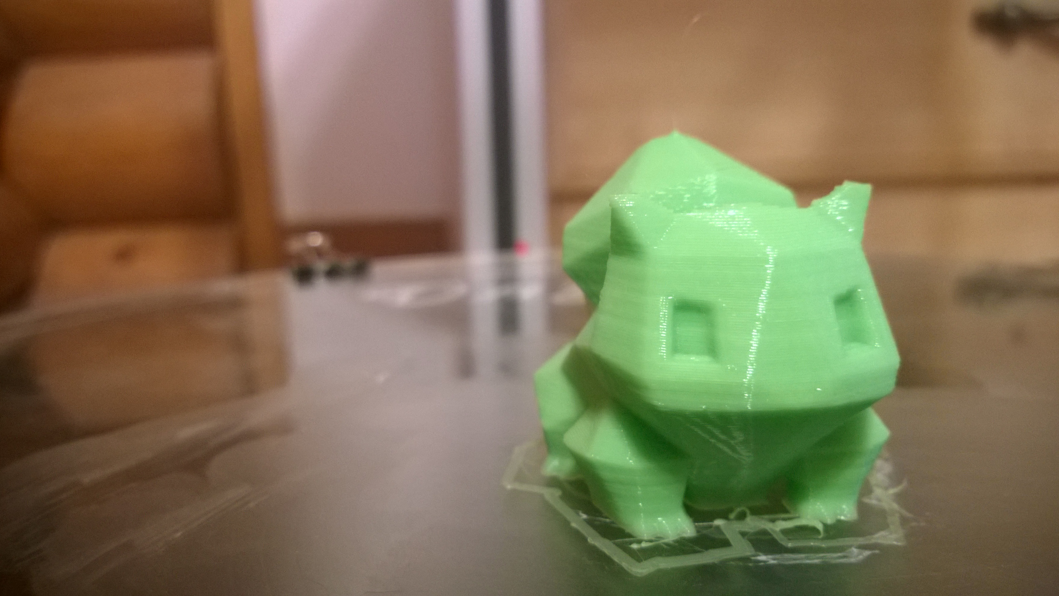 The model was a small Low Poly Bulbasaur from Thingiverse Using Cura it took about 50 minutes to print, most of my pla prints have come out better on Cura than Slic3r because of stringing. I dont know if Cura lets you change the direction of perimeter loop printing, I know where the setting is in ...