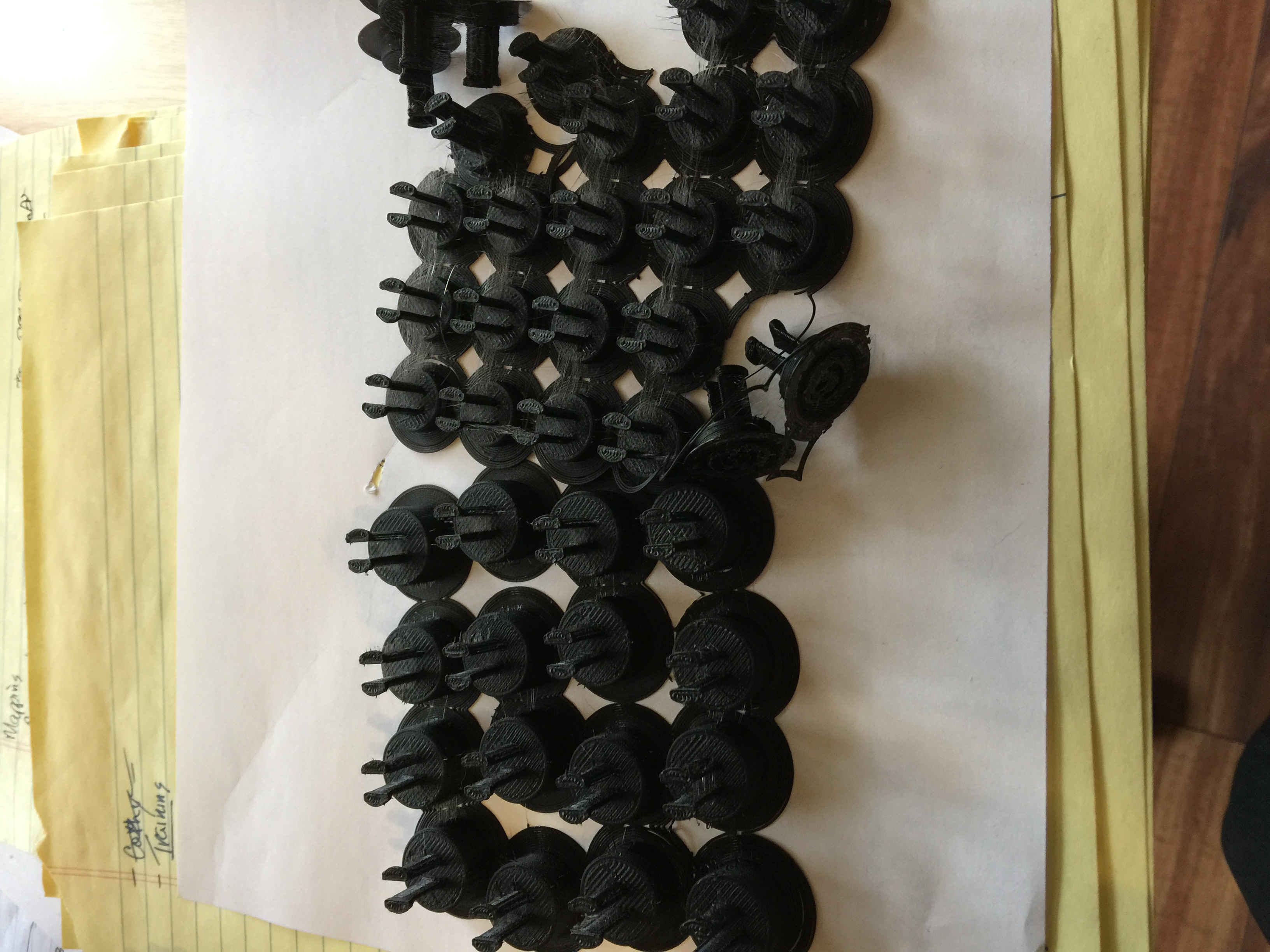 I designed a bobble-head for my hockey team the Green Machine. Lots of dead ends and manufacturing 'learning'. Getting the spring rate in the wheels so they would bend and not break during insertion. Modeled in Solidworks and then printed on my Rostock Max V2. About an hour for a set of wheels, 1.5 ...