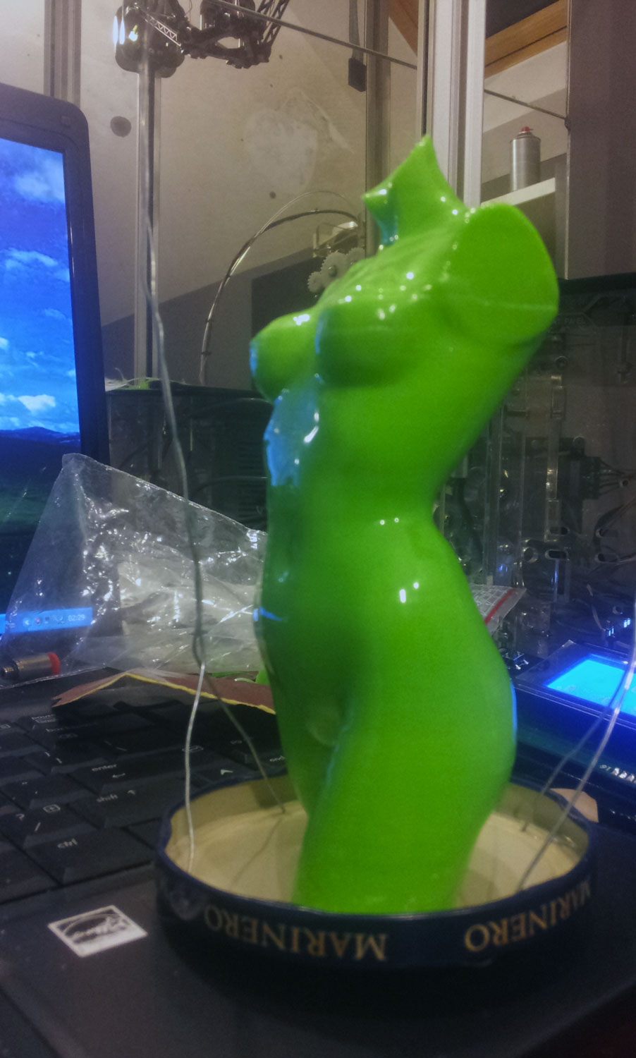 Here is my latest prints, using KISSlicer 1.0.9 an by Mhackney's setting from his build topic. Yoda head stops on layer 241.