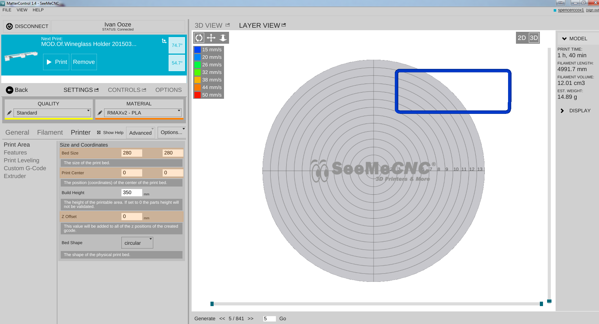 I cannot figure it out but my 3d view of the print has it at center but in the layer view and when I print it puts in like the layer view!