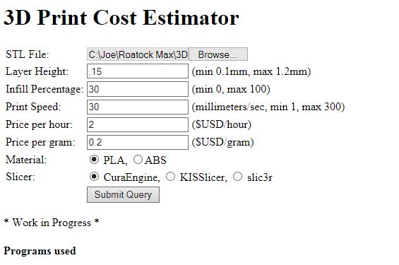 I keep getting "an error occurred" with the tool.jesse wrote:Here's a tool I made for 3d print pricing: http://jbcse.com/3d-print-cost-estimator.php
