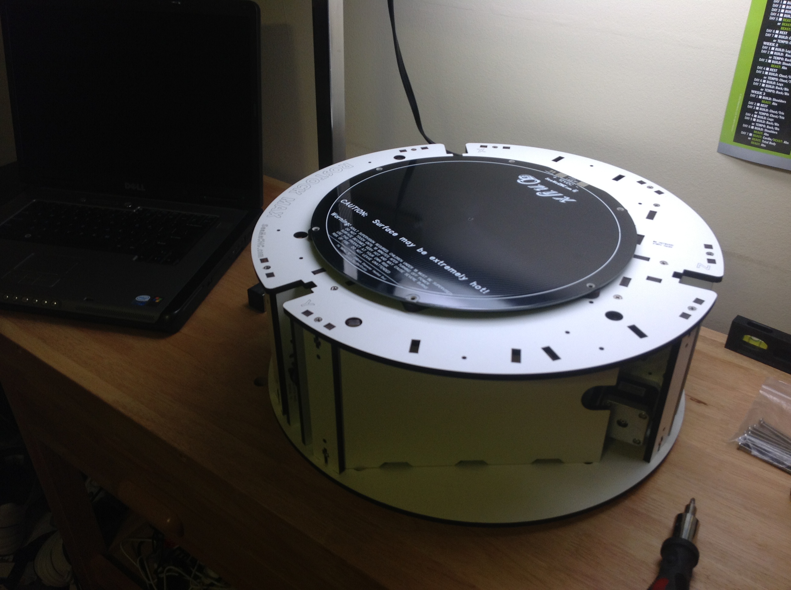 If you click for the full image you can see it along what is the left edge. Thanks for making me panic and worry that I'd somehow put it on upside down or something!Eaglezsoar wrote:Thanks for the great pictures. I am confused, in your first pictures your top piece for the base says "Rostock Max"