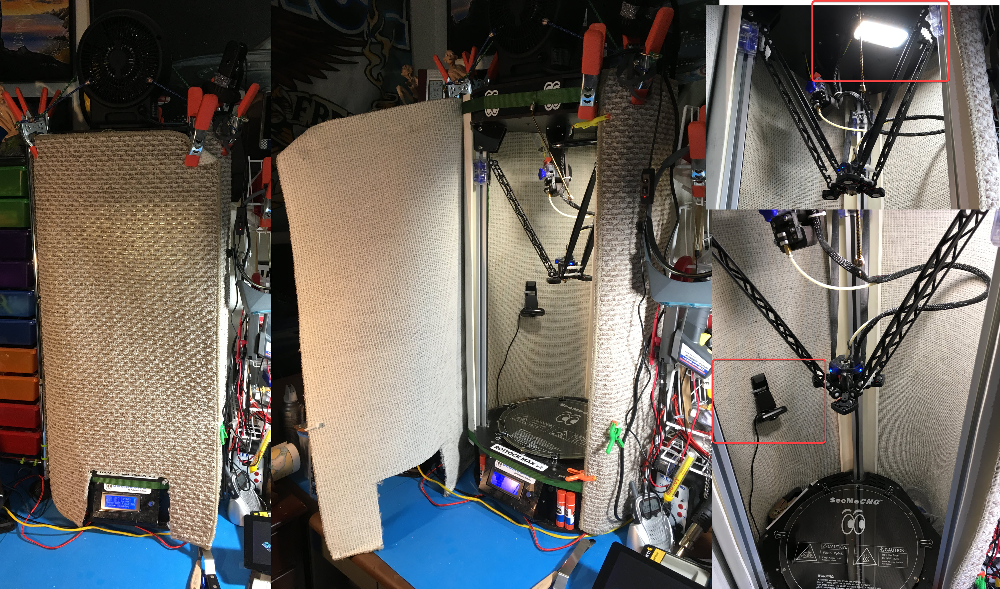 Rostock Max V2, Ball Cup Arms, New Carriages, HE280, Dampers, PSU Breathing, Simplify 3D, GeckoTek3D, Raspberry Pi3. Duet soon... Kossel Mini still under construction.