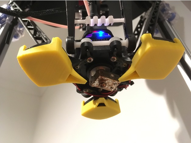 We printed them out of PLA, and even with print settings that weren't tuned well at the time leaving the parts messy, they cleaned up easy enough and snapped into place. Haven't had any issue with them coming off, and it does feel like the air is blowing in towards the nozzle, much closer than without these. No interference with arms or towers even when running the full calibration wizard program's movements.
