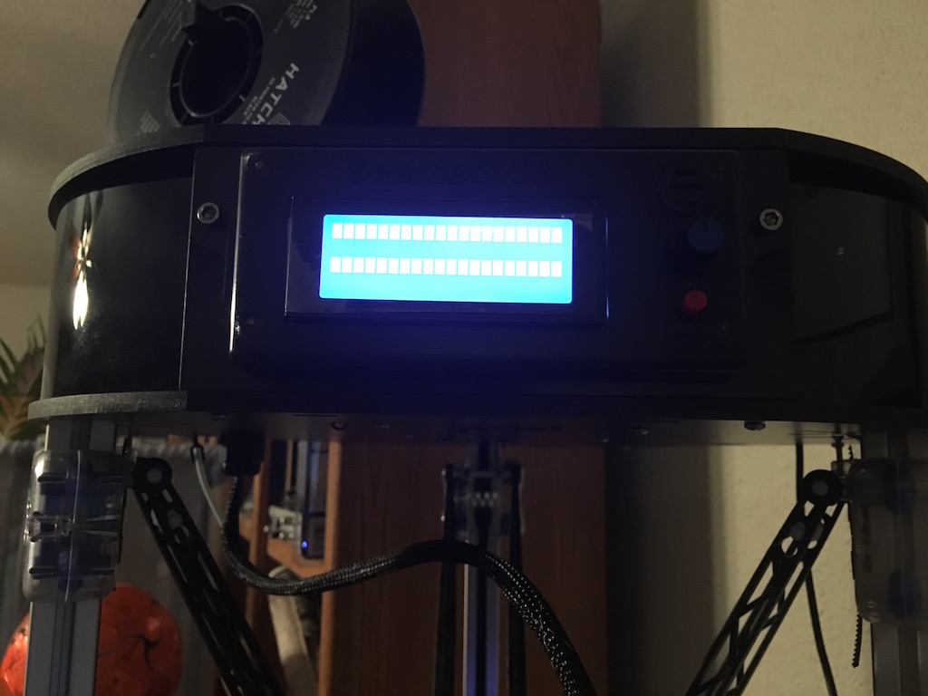 I have been using my Rostock Max v3 for almost three months will no major issues. Last night I noticed that the display now showed two line of white squares. Up to this point the display was working fine. The printer still functions fine and I am able to do prints. I checked the wiring as best I could without taking the printer apart. As a possible fix I cleared the eprom and uploaded the latest firmware. None of this has corrected the problem. Before I go take the printer apart I was hoping that someone might have a solution.