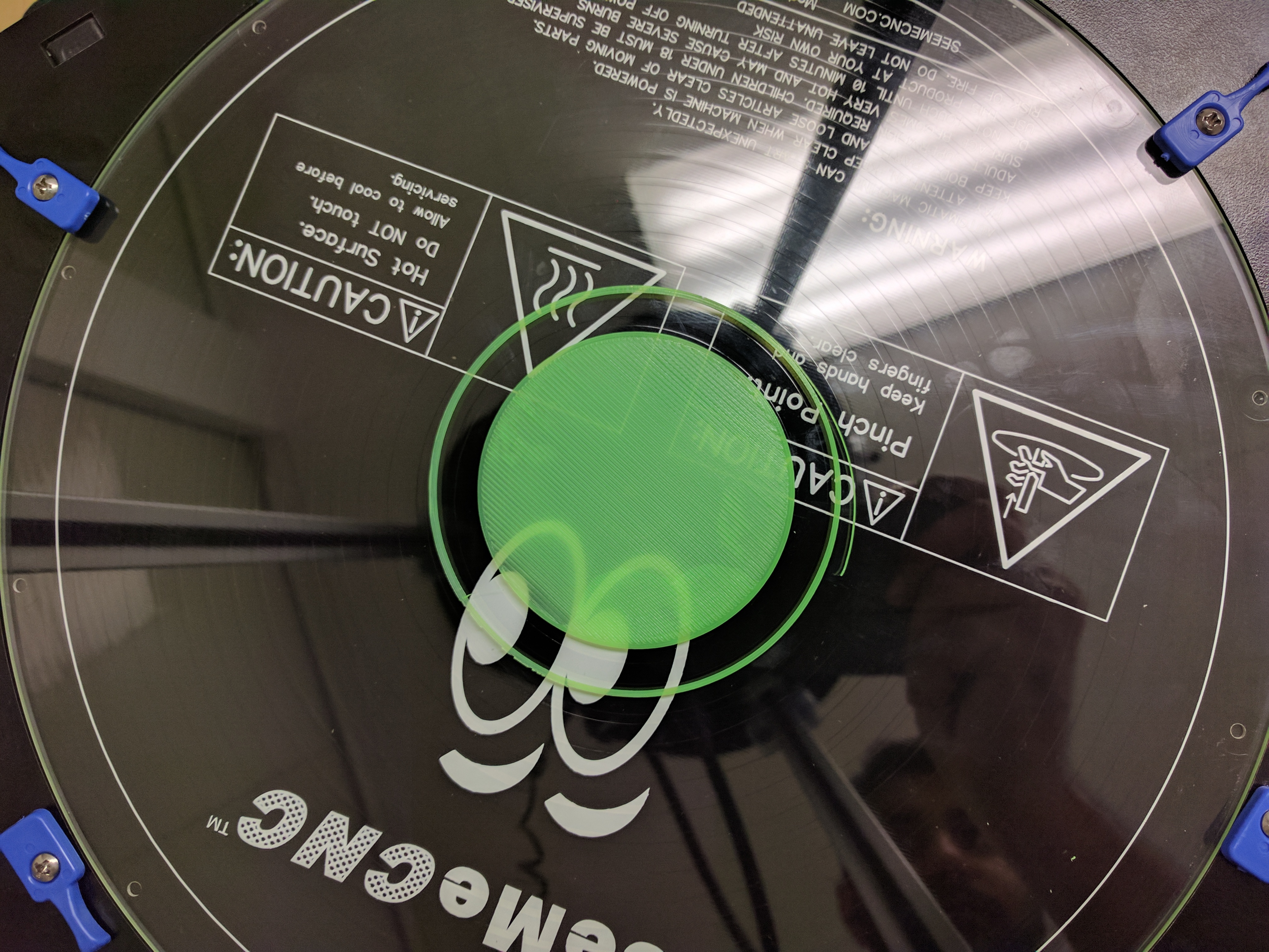Clearly this hasn't worked as evident from the layers that I printed on different parts of the bed (Sorry I tried to get the best shots possible but with the placement of the light a little glare did sneak in).