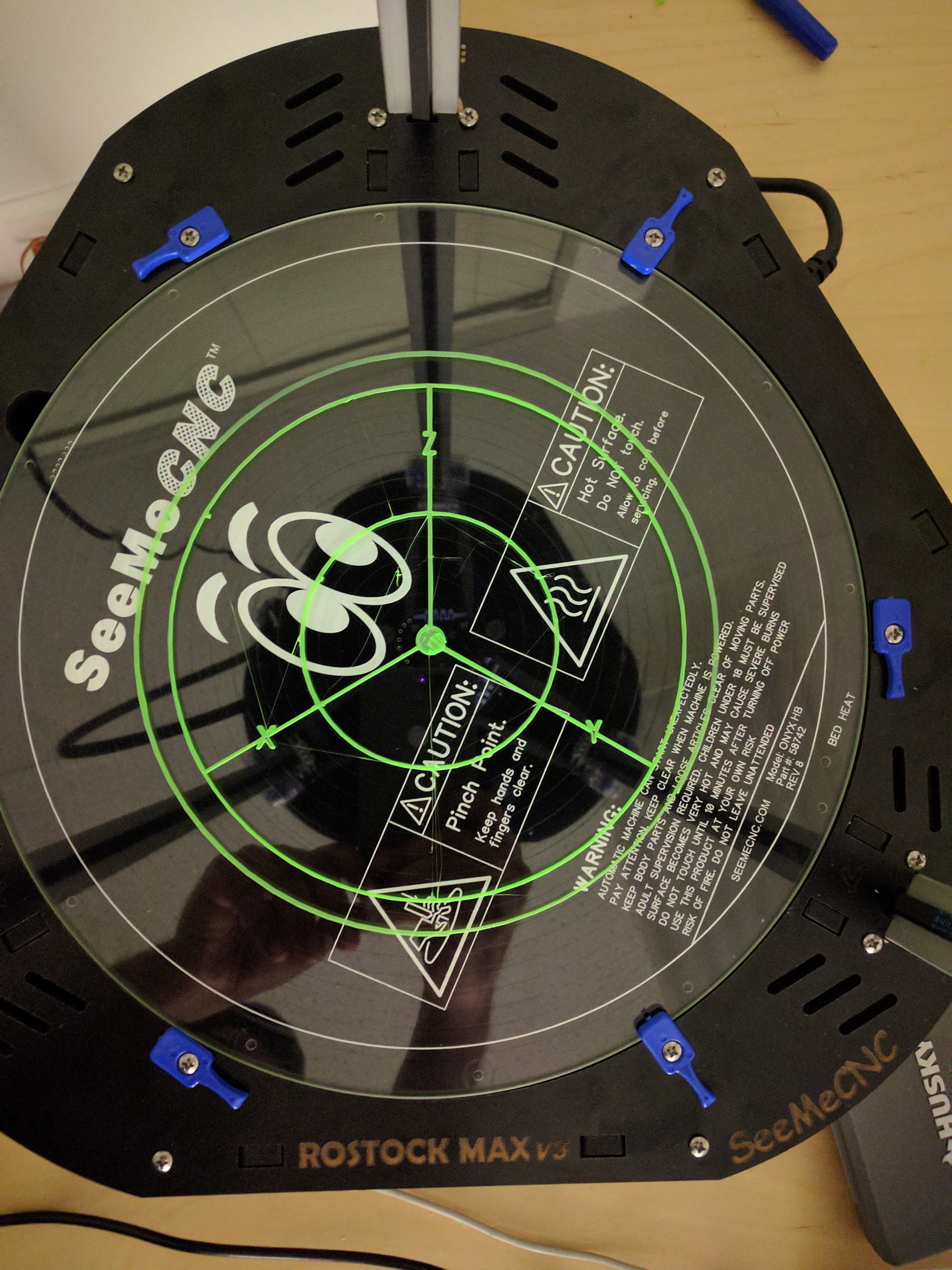 I have been trying to get a decent print out of my Rostock MAX V3 for almost over 3 weeks now but I am afraid I've failed miserably. I started off by calibrating my printer using the recommended steps in the assembly guide. First the simple calibration and then the advanced calibration using Mattercontrol software. I couldn't get a decent first layer with that method.