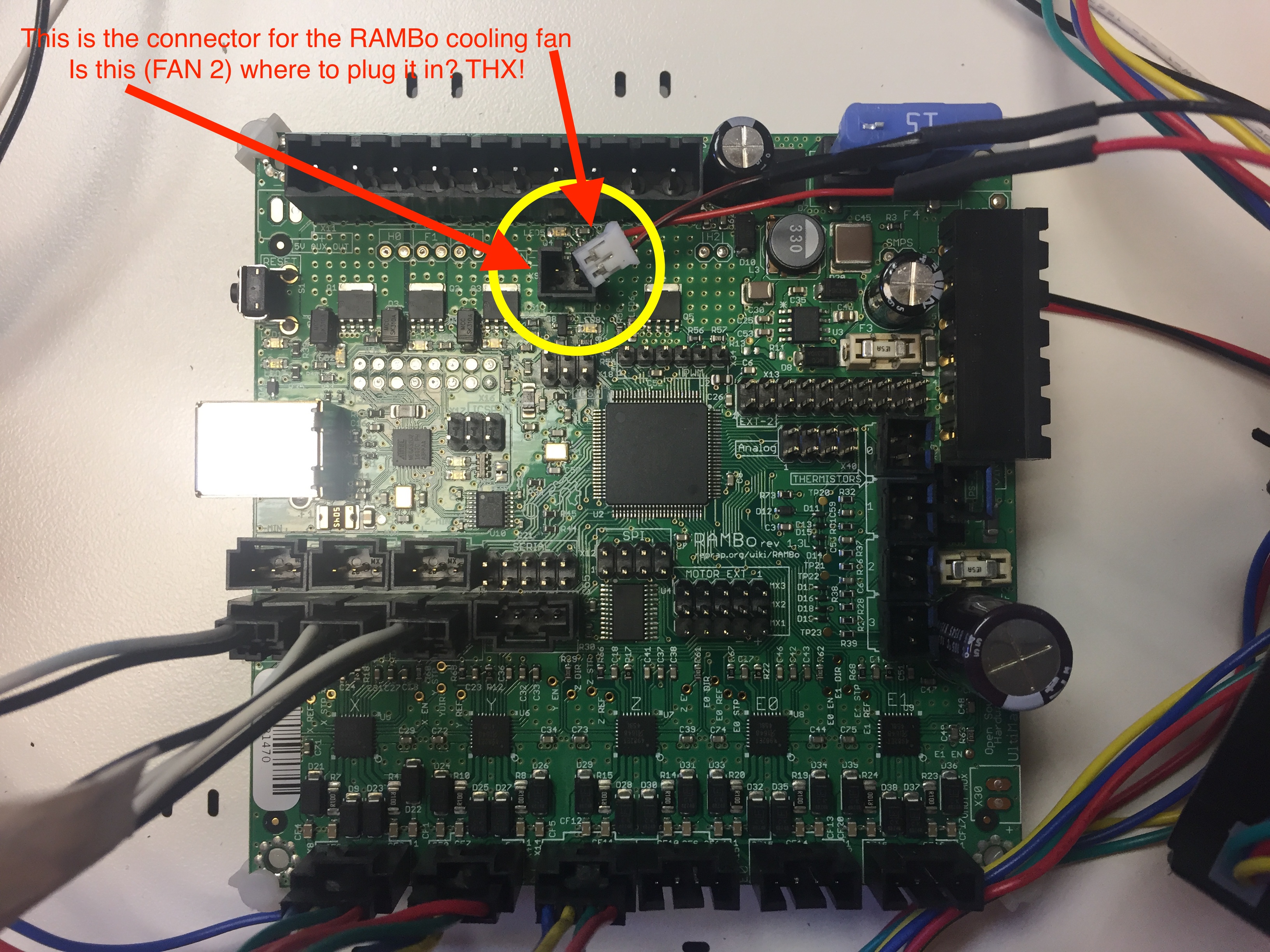 I'm building a Rostock V3 and can't find the for sure right connection for the 40mm Rambo cooling fan on the board -- is it Fan 2? My board doesn't have the connection in the lower right shown in most documentation... Thanks for any input.