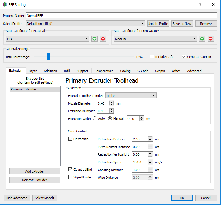 Coast is your pressure relief in S3D. If you have any back pressure with any bit of vertical lift, you'll see those extra blobs during lift movements.