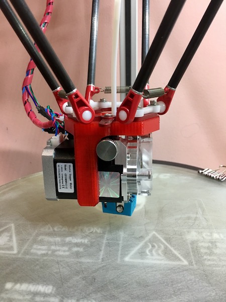 Anyway - its for a E3D Titan Aero and BERD Air for part cooling. I took an unorthodox approach and used an accessory tab on the effector to provide additional rigidity to the stepper motor section. It does produce a very imbalanced effector, but I've not seen problems with it yet. The nozzle is approximately centered. I use an effector from 713maker. You will need to print a small spacer as per the drawing to use this with a stock effector. This picture is supposed to show the very small length of clear tubing I place on the BERD Air aluminum tube to retain its position. You can see it between the ball joint and the effector. (I use clear fuel line tubing from a local hardware store for the BERD Air.) Its simple and keeps the air ring in place pretty reliably.