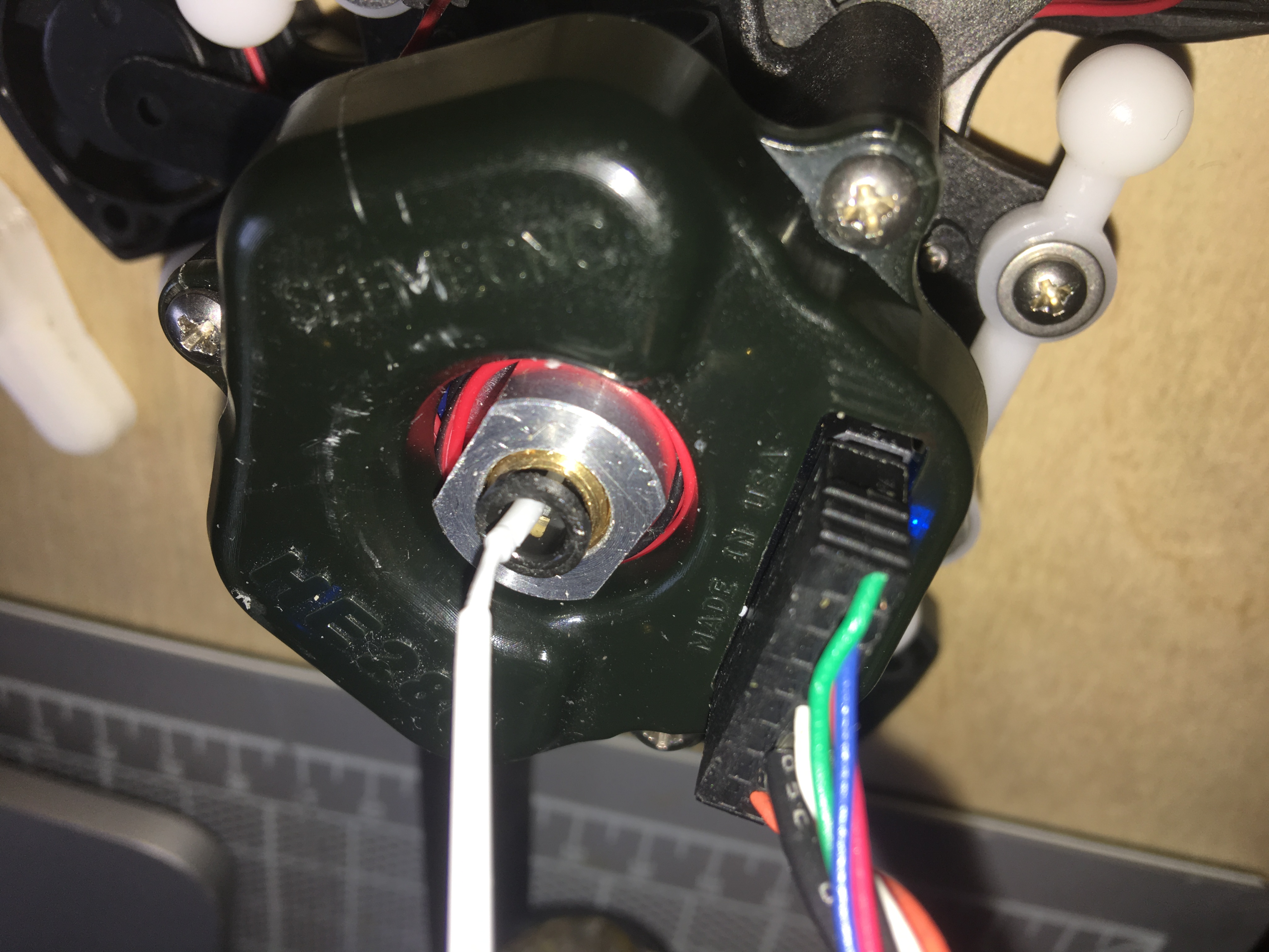 but the grinding up of filament issue continued. I assumed that I did something wrong considering that the post says that there's a 100% success rate with that method, so I went to try it again. The problem is, I now have a "puck" of filament that I can't back out of the hot end. The puck seems to be too large in diameter to be able to pull out through the black plastic ring on top of the PTC adapter.