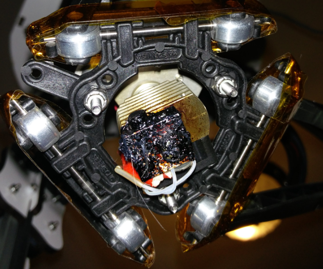 Or when those stupid pins that hold the Effector Platform to the Delta Arms work their way out (yet again) and the platform drops down and smacks your print and knocks it off of the heated bed, that will do it too. It didn't break the thermistor itself, but pulled apart the tiny wire going to it.