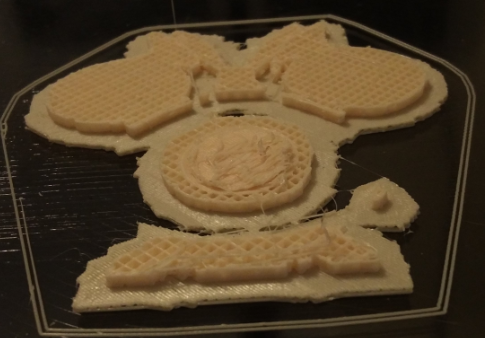 I tried out printing at .05mm layers, which caused the part to fold up on one side. So I went the other way, and increased the layer height to 2mm.