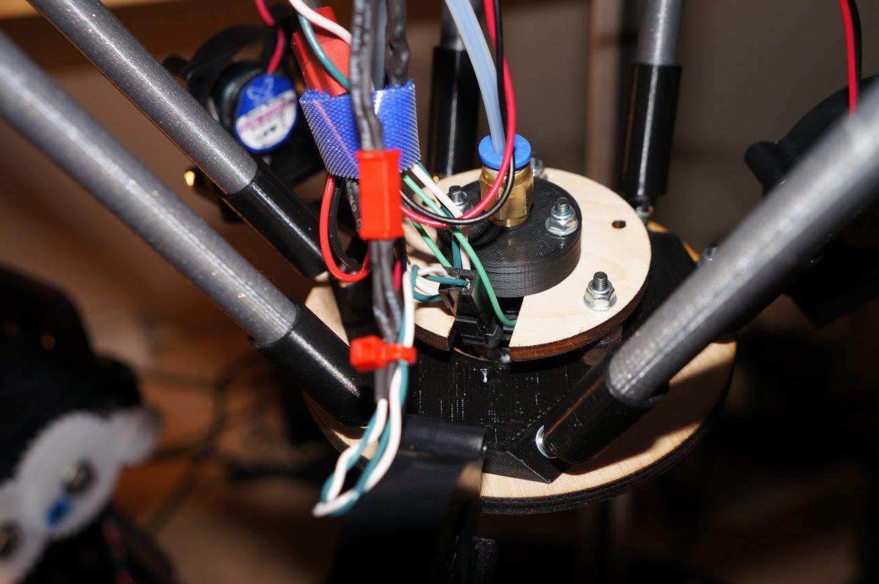 - The stock seemecnc hot end will work in this but don't use the standoffs. You want to keep the hotend away from the printed effector.