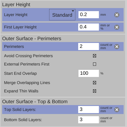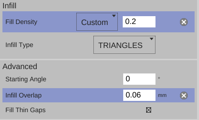 I am using Matter Slice as my slice engine, mostly because it allows me to alter a few more options with infill. Using a pretty standard PLA for the printer.