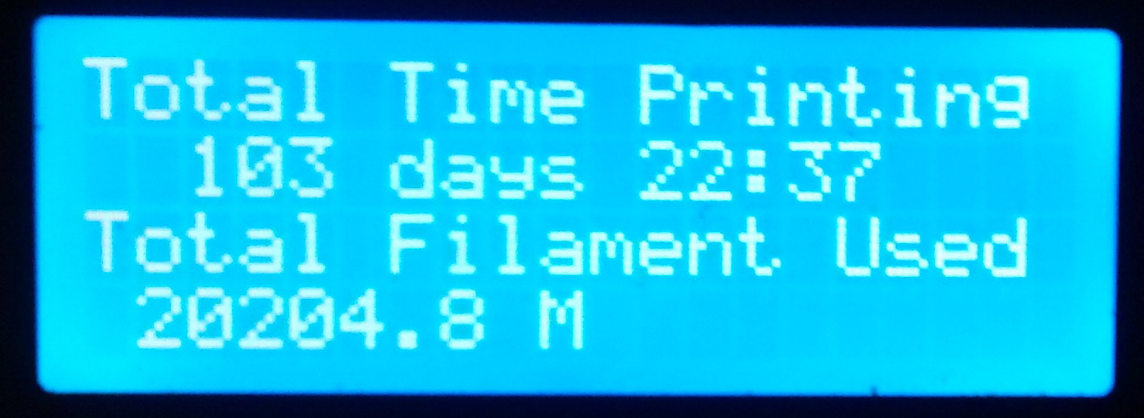 Welp, this thread has been a journal, so we make a new entry. We just had our first failure! 25000M in and the borosilicate bed shattered while removing a printed piece. I also seem to have a bearing starting to fail (I can hear whining from the Y motor bay in the base, but its not the stepper), but for as long as this thing has lasted, I am still impressed. Gonna replace the bed and see how far I can push her while longingly staring at a Max3...