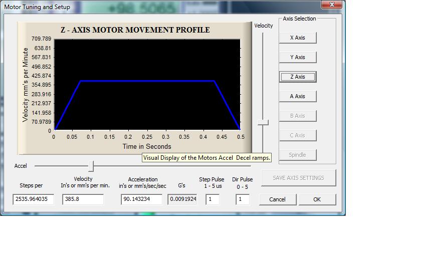 Calibrate A Axis will 100mm/min or less to get a accurate steps per setting. I guess my Accell is higher than I stated above... Problem with trying to remember info! LOL
