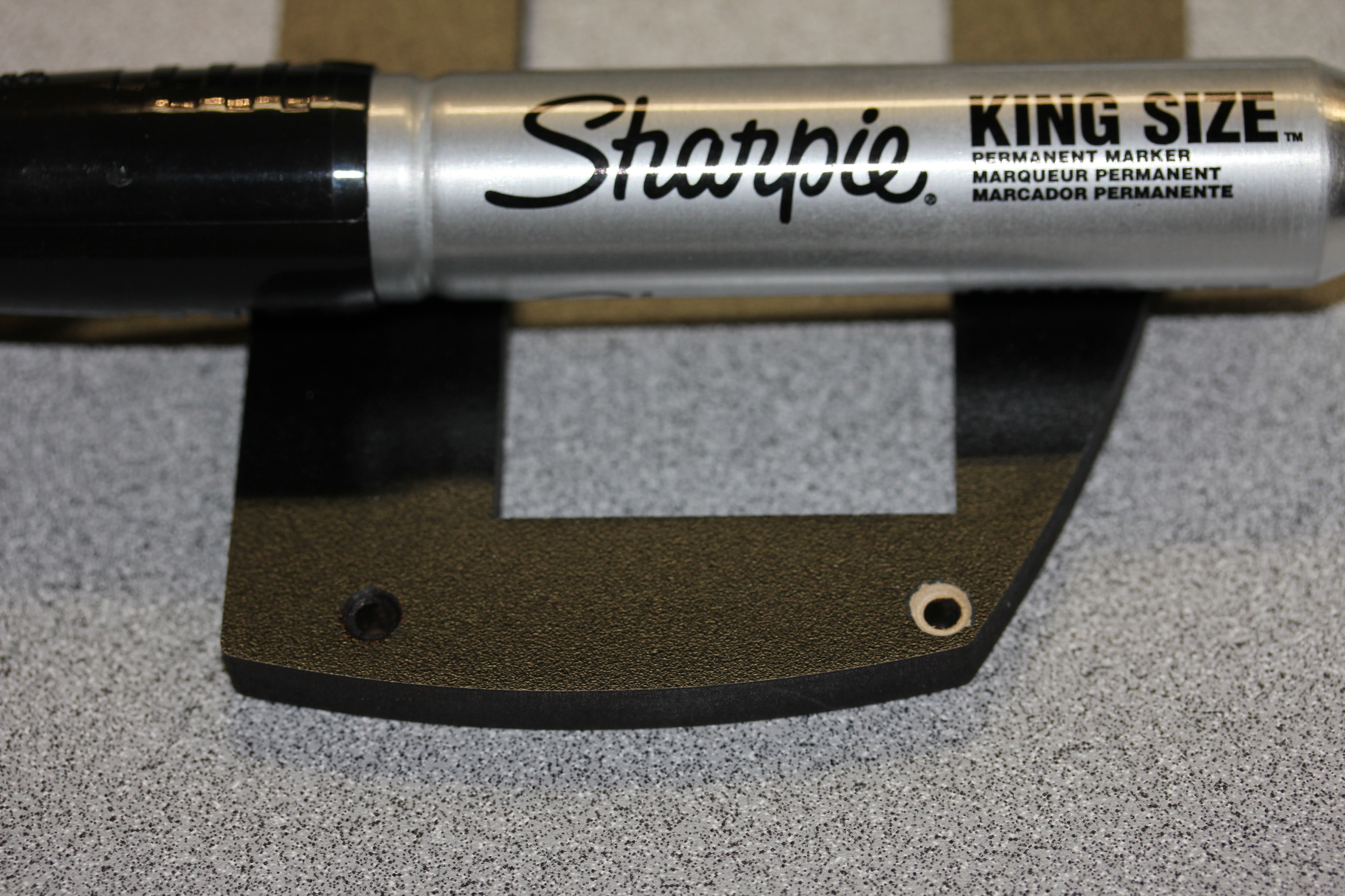 A black Sharpie dressed up the countersink holes. The fiberboard sucks up Sharpie ink like a sponge.
