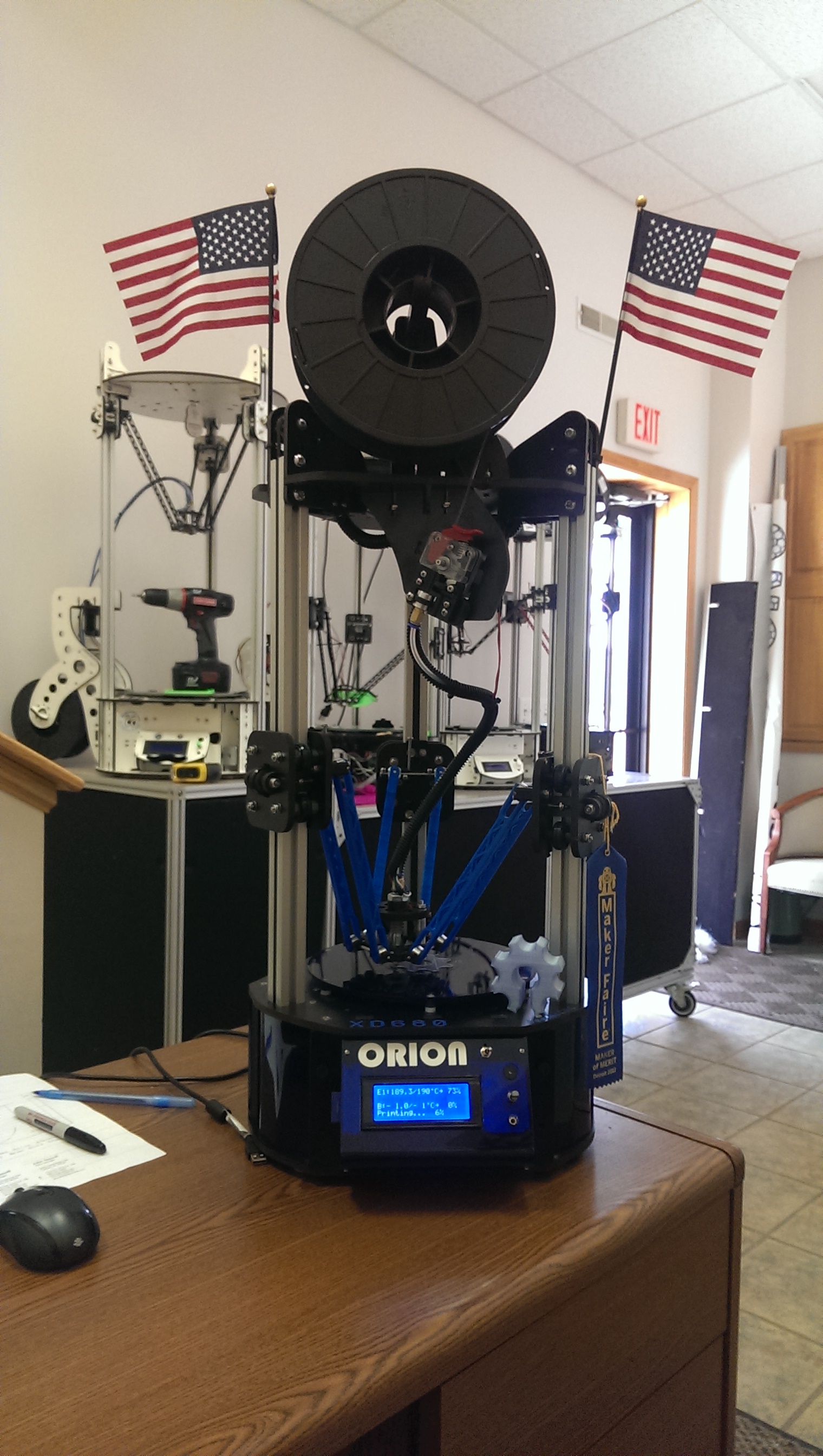 Ok guys, here it is. It's now named ORION, rather than XD680, thanks to Guanu on #reprap IRC The 680 stood for the ability to print a 6" square 8" tall (it has an 8" diameter build surface overall though)