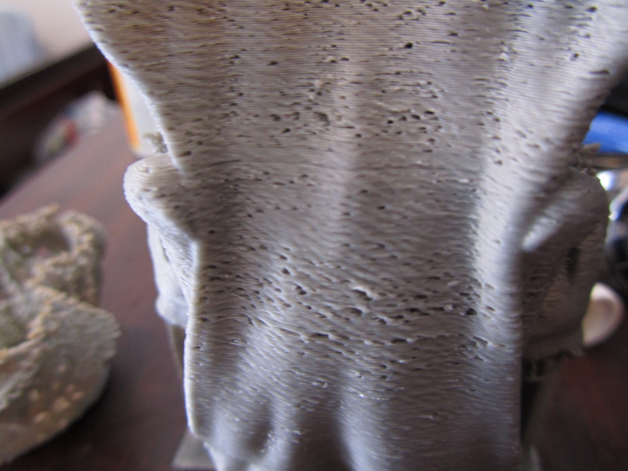 Attached are a few photos of some recent prints. One is a vase that I stopped around 60% into the printing, you can see there are a lot of holes etc in the side walls. Then there is a figure I printed, and the although parts of it looked ok, the top really was messed up. Any suggestions?