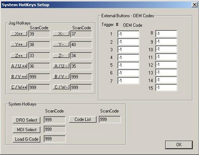 Also, on jogging, just to make sure you are not experiencing a Num Lock or other keyboard setting, in Mach, press the Tab key and the fly-out jogging window will popup. Use the mouse to click the + and - direction for the A axis to test it.