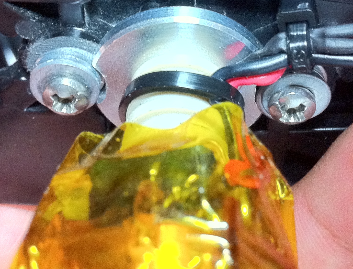 I basically took this idea from Brian, I ground down the threaded aluminum housing of the extruder to a point (see pics below).