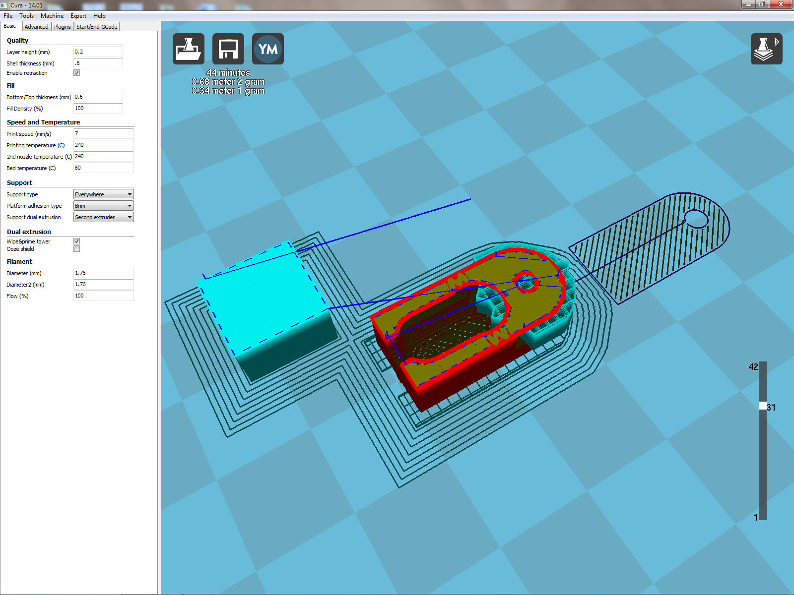 I am using Cura 14.01 as my preferred slicer as I learn to use dual hotends. I also use it when I am using a single hotend. If you want to follow along with the following discussion you might go ahead and download Cura from this link: https://www.ultimaker.com/pages/our-software.