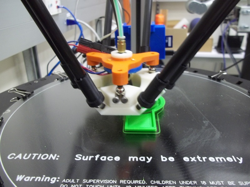 Instead of an independently controlled tool-changer like on CNC machines, you can use the movement of the effector and magnetics to swap out hotends. I think this is superior to mounting hotends side by side, and it would allow for a much greater number of hotends while maintaining the same weight on the moving effector. The big problem I saw from the implementation above was the inconsistency in positioning of the tool after a swap. The person in the video above was using it as an experiment for food printing, I think, so precision wasn't as important (I think), but having magnets by themselves won't do if we're swapping out hotends every layer of a print job.