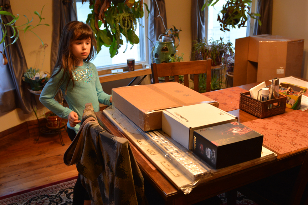 I spent 1 hour unpacking, peeling the tape off the wood and organizing all the parts. The real fun will start tomorrow!