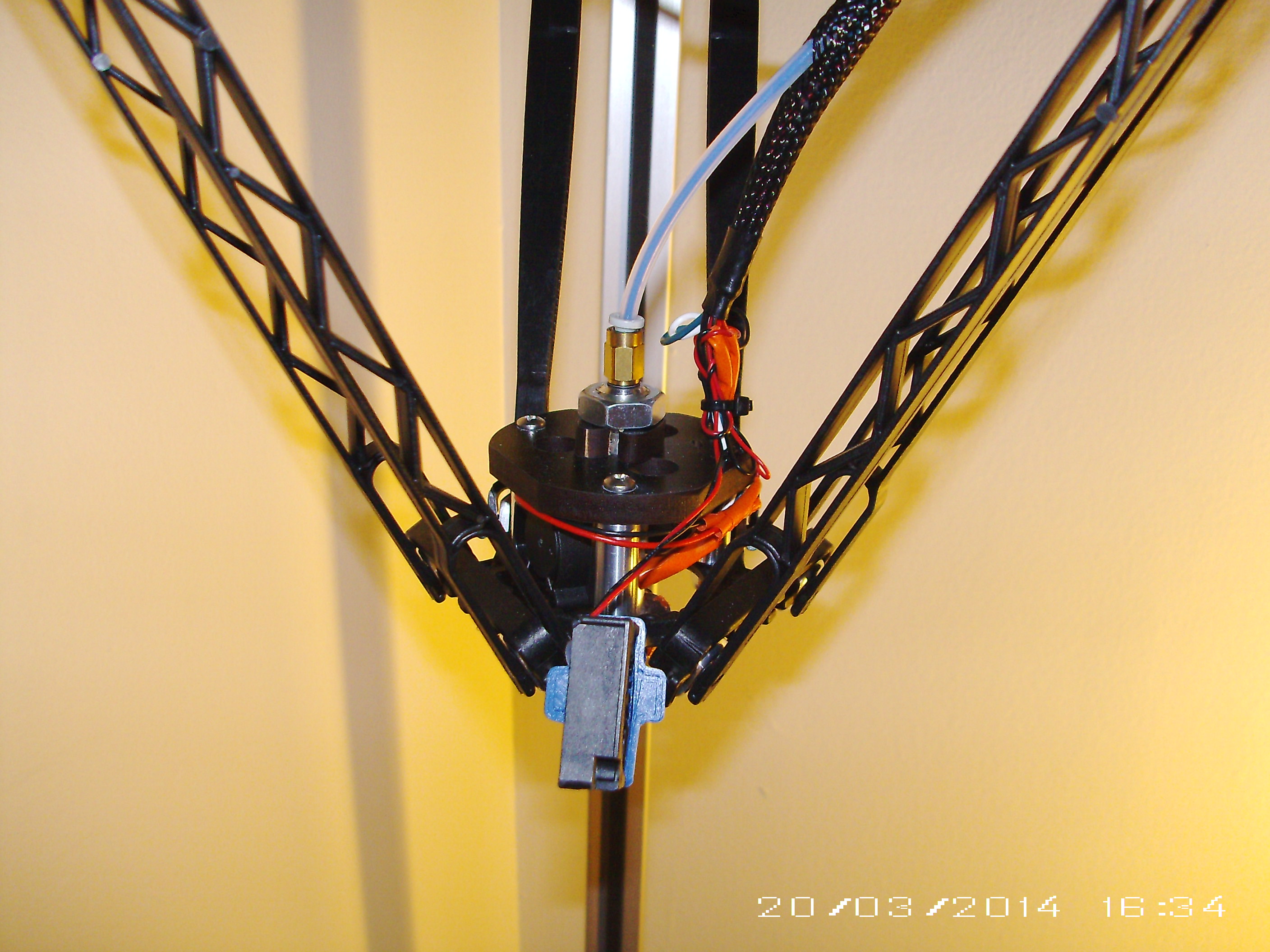 It seems to be between the back Z tower and the right Y? tower. The hot end is just the stock one that came with the kit.