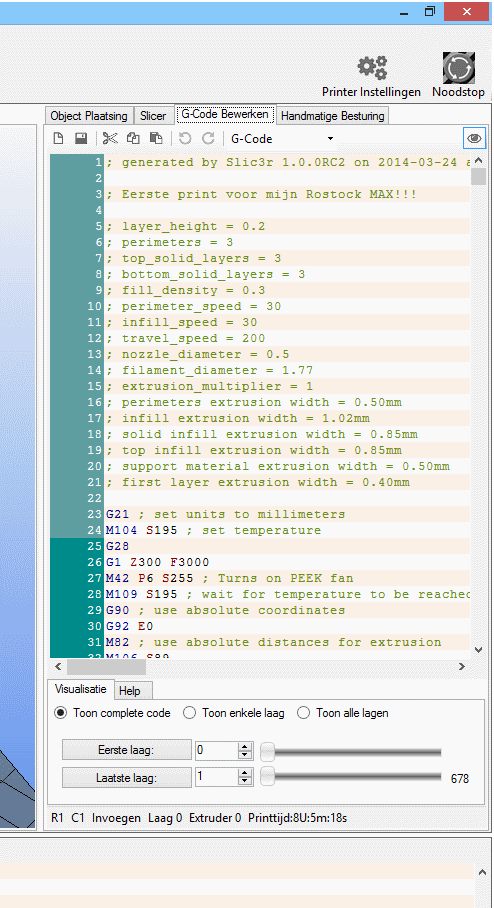 - Go to the slicing tab and choose the settings (configure) for slic3r.