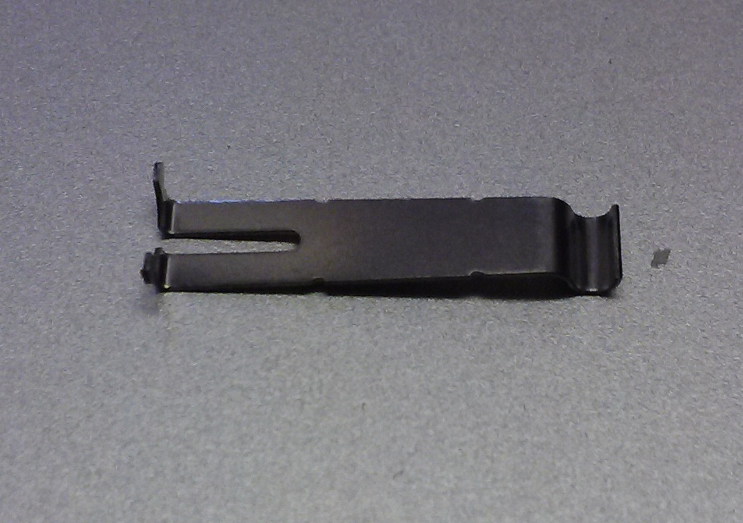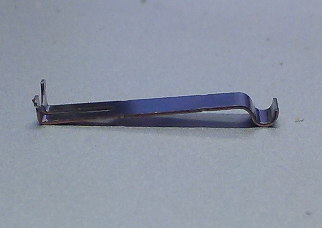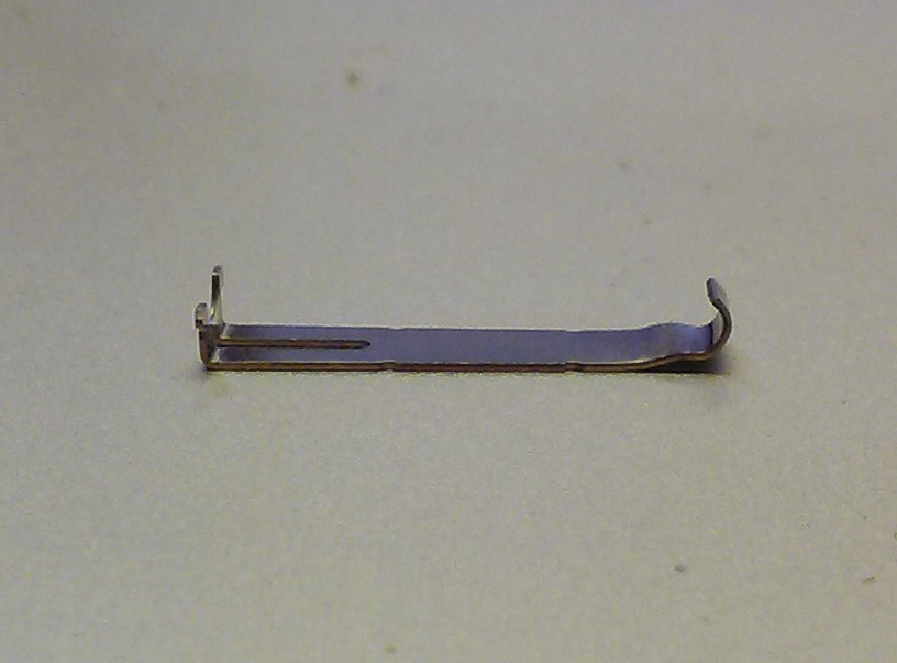 To fix this, I decided to flatten the ends of the switch levers. The switch levers are relatively easy to remove; they have a forked end with points that fit into divots in the body of the switch. Just gently squeeze the fork with needle nose pliers and they'll rotate out:
