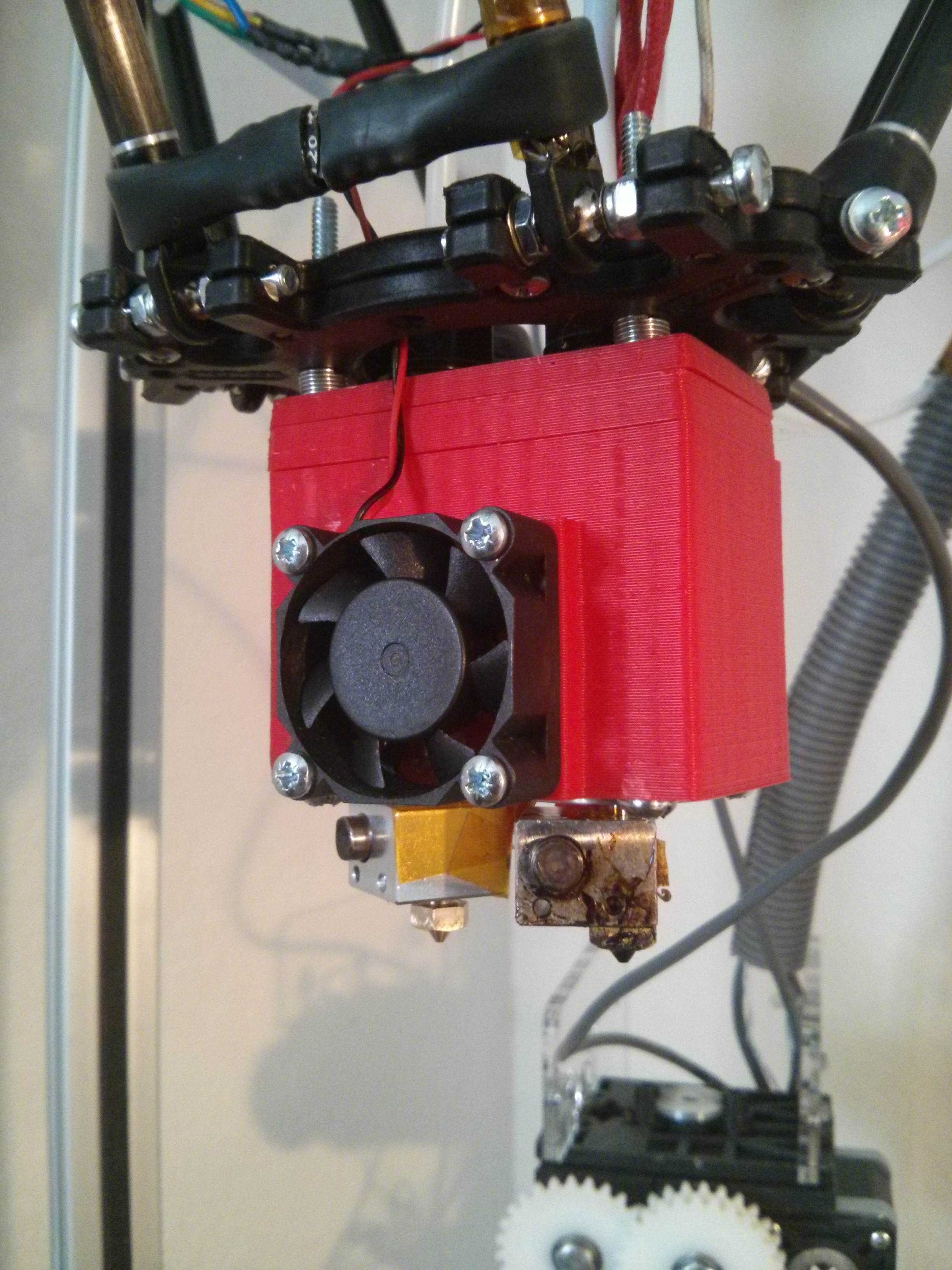 dpmacri wrote:Because of the narrow opening in the stock Rostock MAX platform, I made my dual E3D adaptor place the E3Ds as close together as possible. That way the two bowden connectors actually fit through the platform...barely. :-) I actually screw in the bowden's and align their edges *before* attaching the mount to the platform. It works although I need to make an alteration to my design for adjusting the height of one of the extruders because my 2nd extruder nozzle is a few tenths of a millimeter above the glass when the other one is touching the glass :-(.