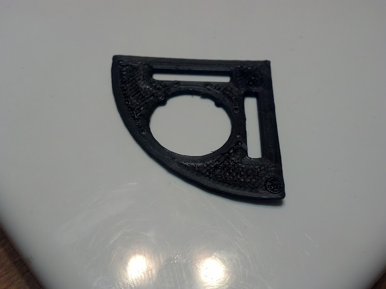 I finally measured my motor drive current. I was only driving about 100 mA per phase. Knowing that, I'm surprised it worked as well as it did. I turned the current up and printed the nickel calibration again. It looks much better now, but the nickel doesn't fit and there's some extra blobbies. I don't have my extruder calibrated properly, yet. I'm pretty sure I'm over-extruding. I also need to play with my retract settings in Slic3r.