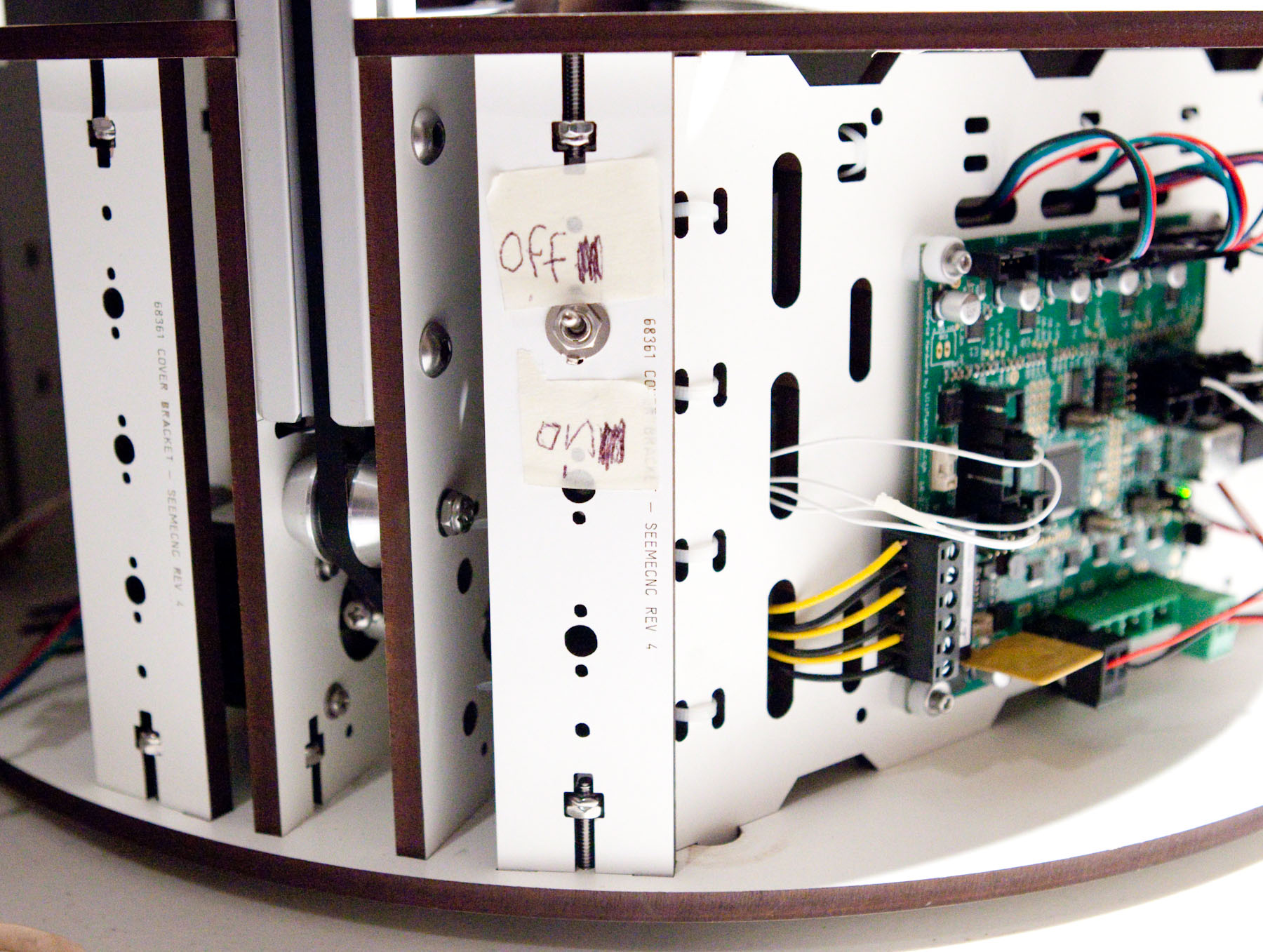 - John posted additional info on Reprap’s Rostock Max wiki page just in time for us. Used that and the Rambo wiki to determine how to connect to the board. Posted questions on the Seemecnc forum and got answers.