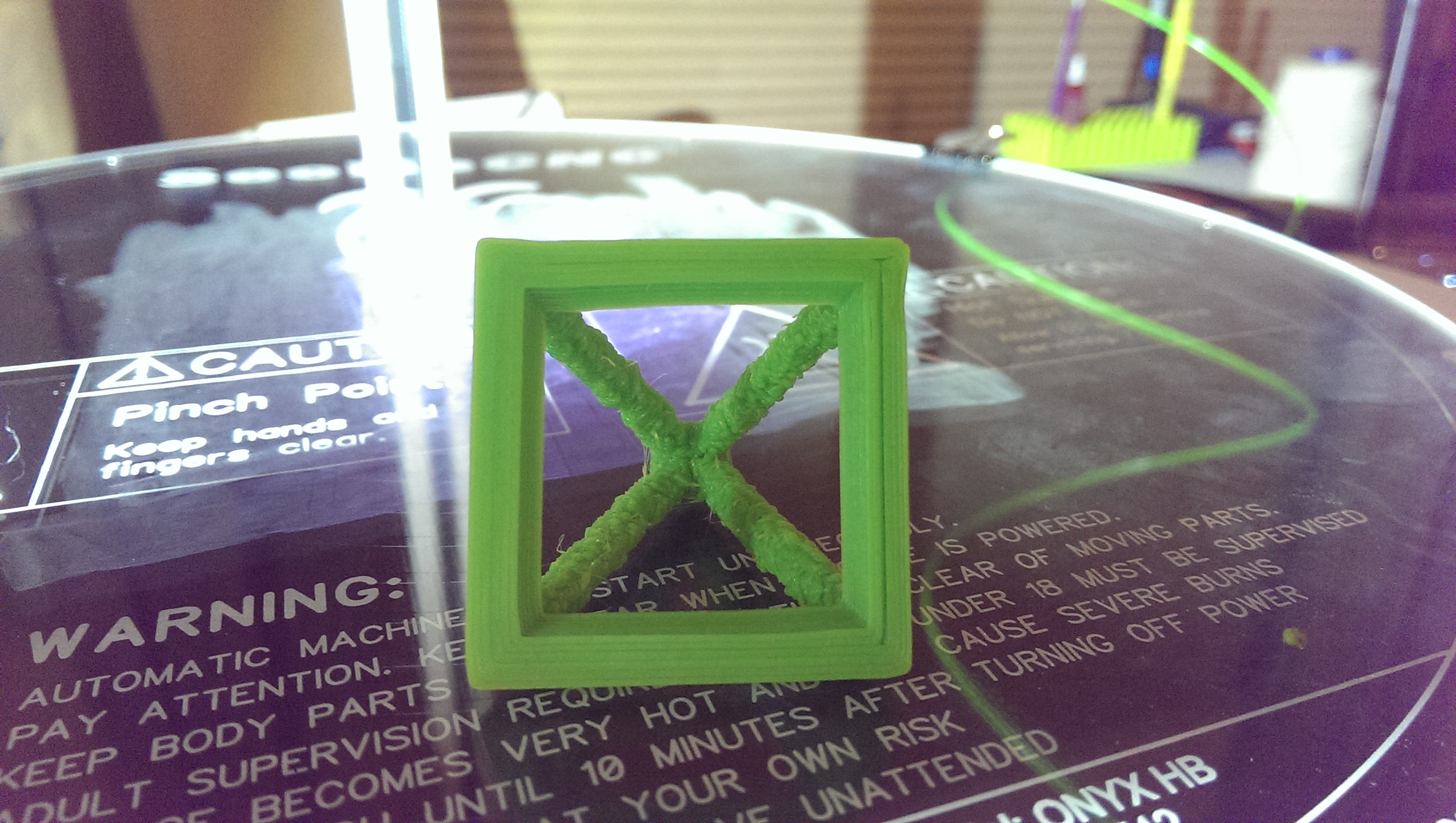 alright sorry thats my fault, i meant to say the calibration cube that gene mentions in the build manual. what slicer are you using? what temps do you have? it looks like you are running only walls/perimeters no infill? what is your movement speeds? do you have z lift?
