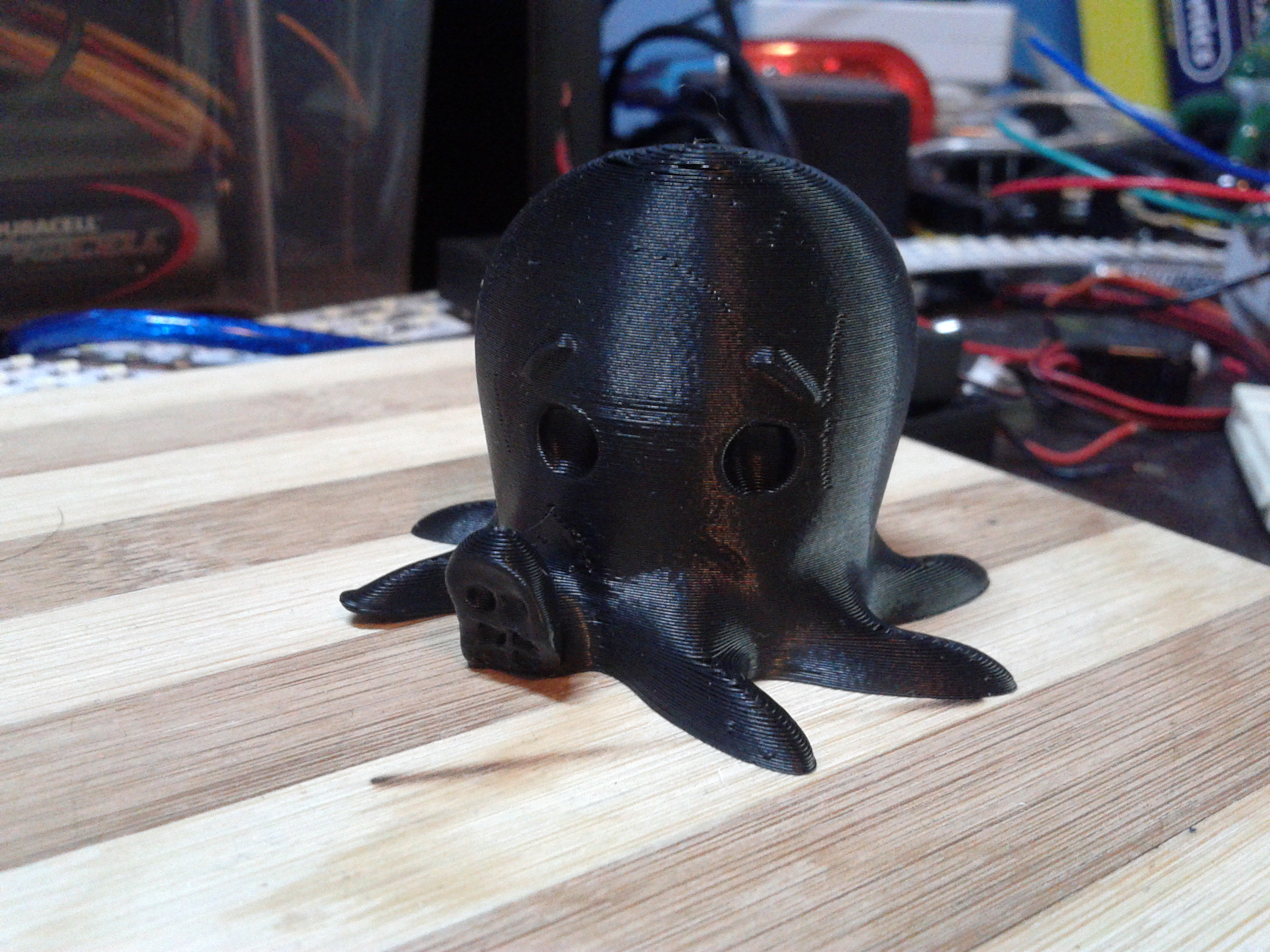this is my print of the iconic "Hello world" Cute Octopus that.... 'the big company who bought out open sourcing 3D products to make a buck' *Cough Makerbot Cough* use to demonstrate their colour selections.