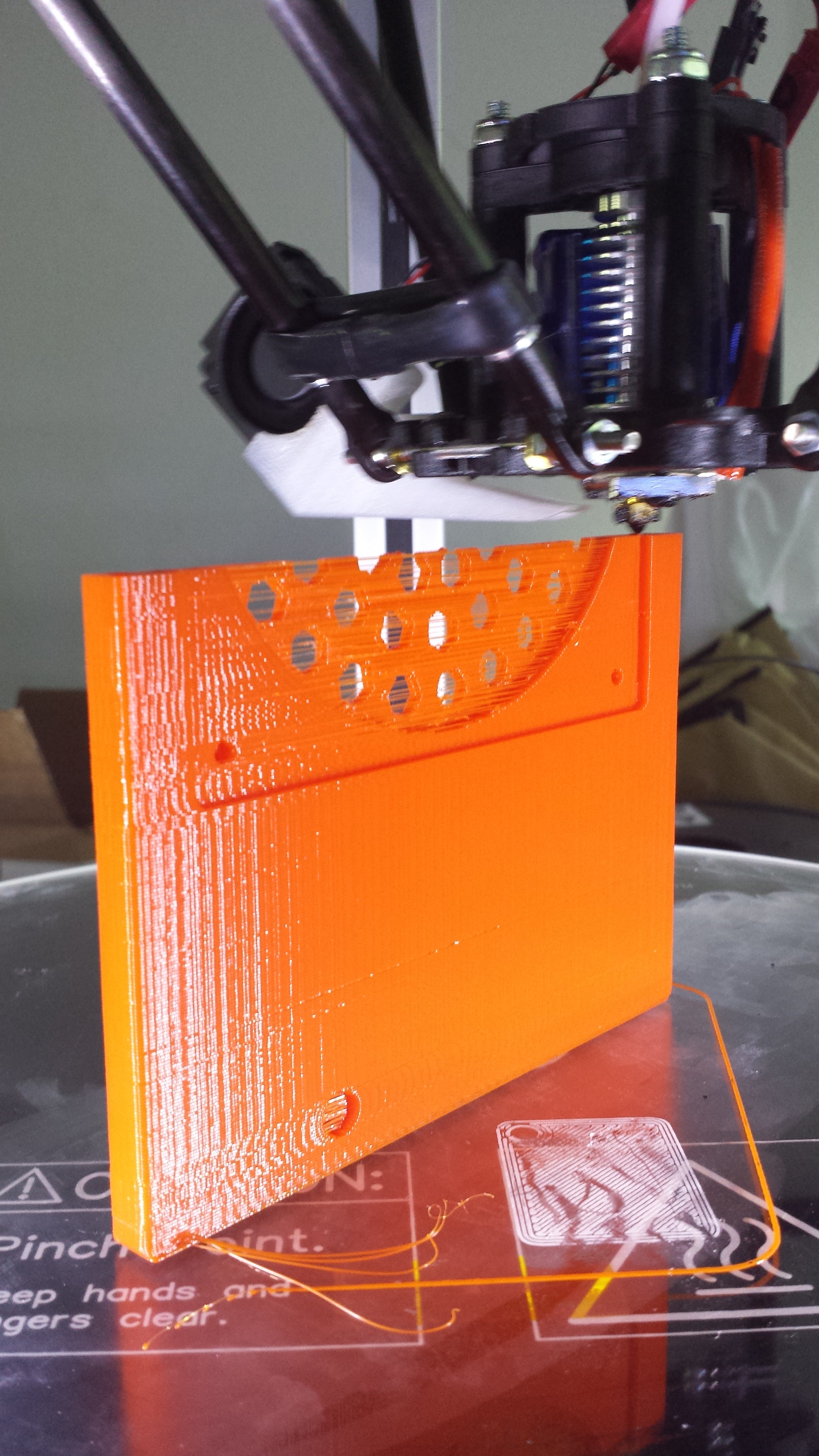 Tonight I am finishing working on a CAD design of the lower side panels to hold the new 90MM fans I picked up to cool the lower bay. Looking forward to printing those out tomorrow and mounting them along with the new RAMBO fan.