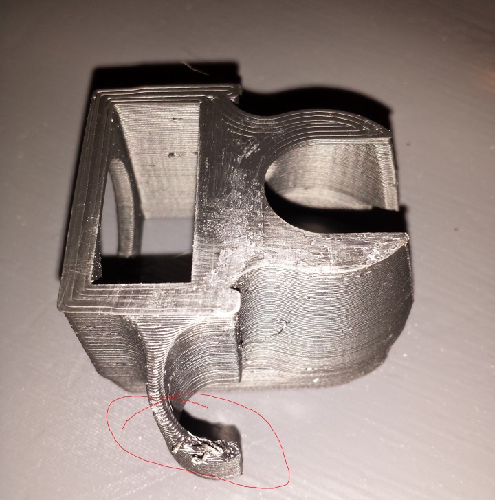 I was able to print the fan shroud but since then I cannot get the first layer to be close enough to the hotbed. On the fan shroud I had problems with the layers not sticking very well together and some issues with some of the pointier edges as seen in the photos below.