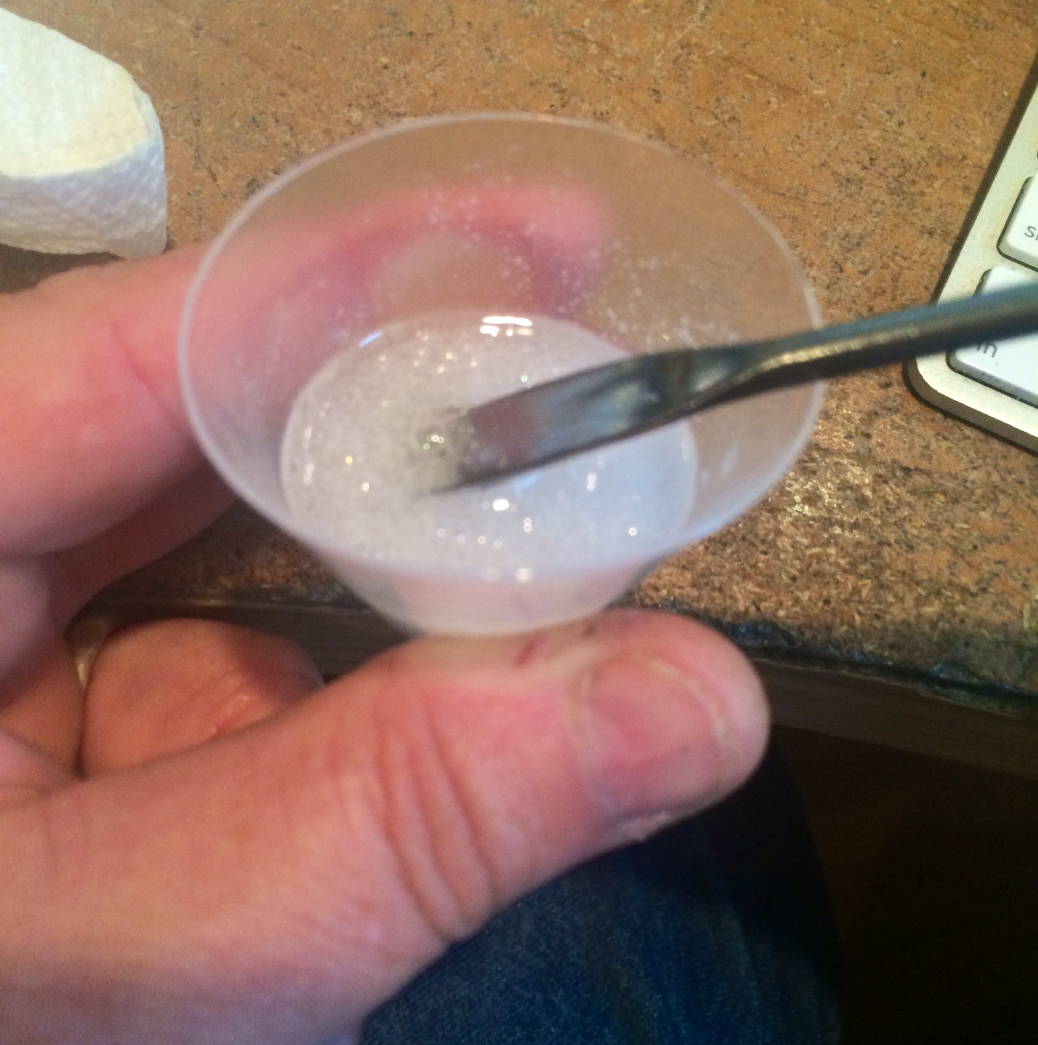 Today I mixed 10ml of the base with 1ml of curing agent to yield 11ml. Stir for 4 minutes until you have lots of bubbles and the mixture is milky looking.