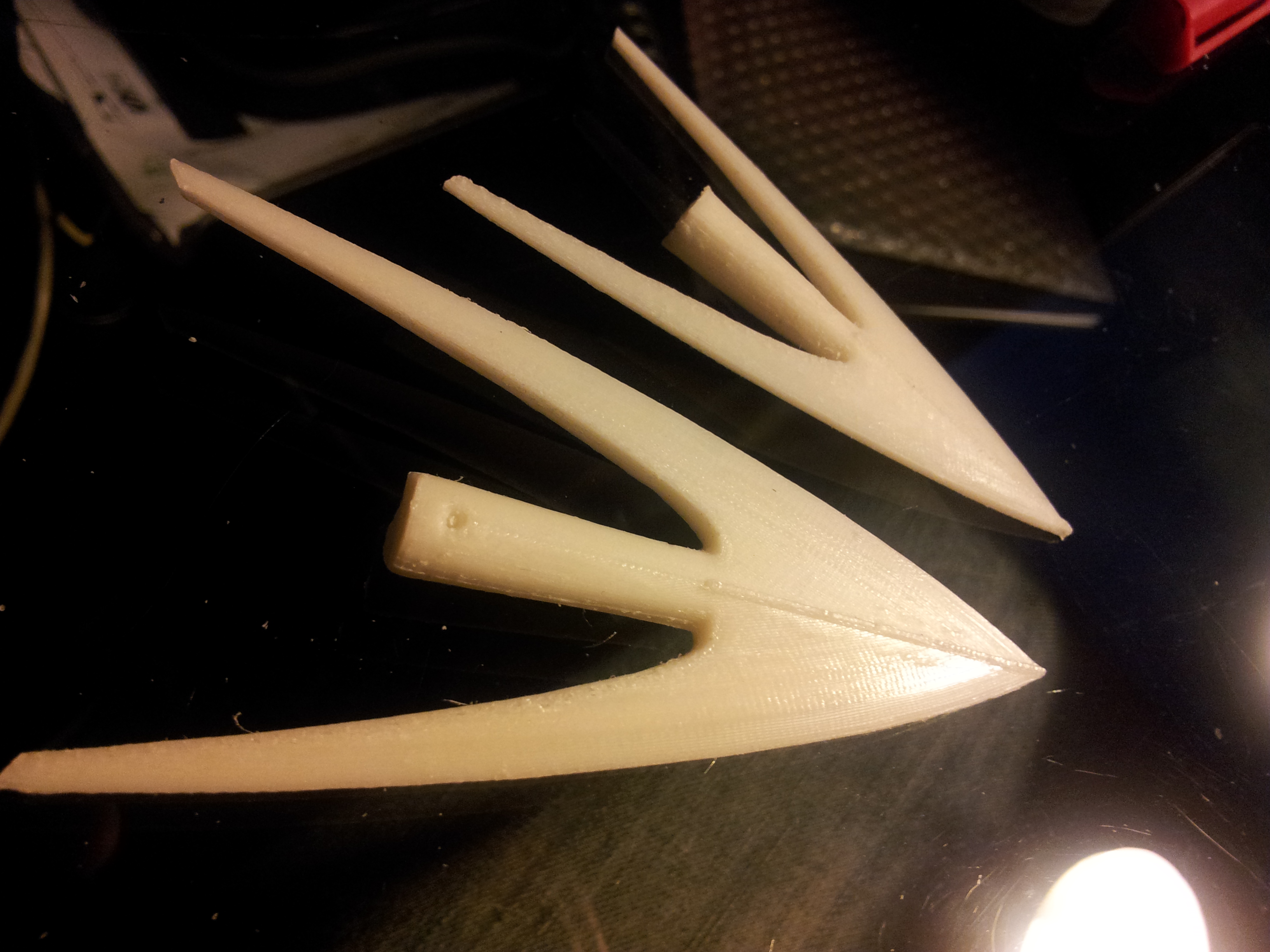 I did have some interesting issues with the first and second prints - for example, I am printing it with 5 or 6 perimeters to be able to handle the super shallow angle of the broadhead and I have upped the top and bottom solid layers to the same amount. I did find with the first print that the temperature of the heated bed allowed the top face of the arrow to bubble in between the honeycomb infill pattern - no doubt due to the thin top layer.