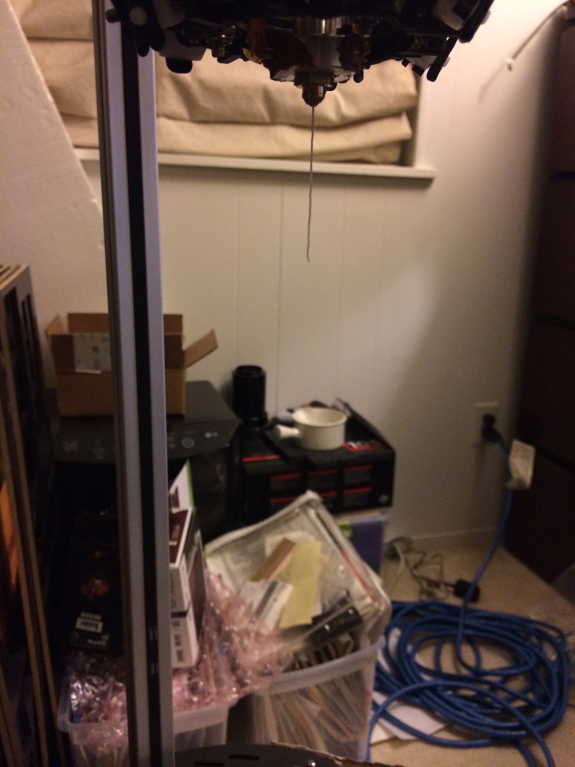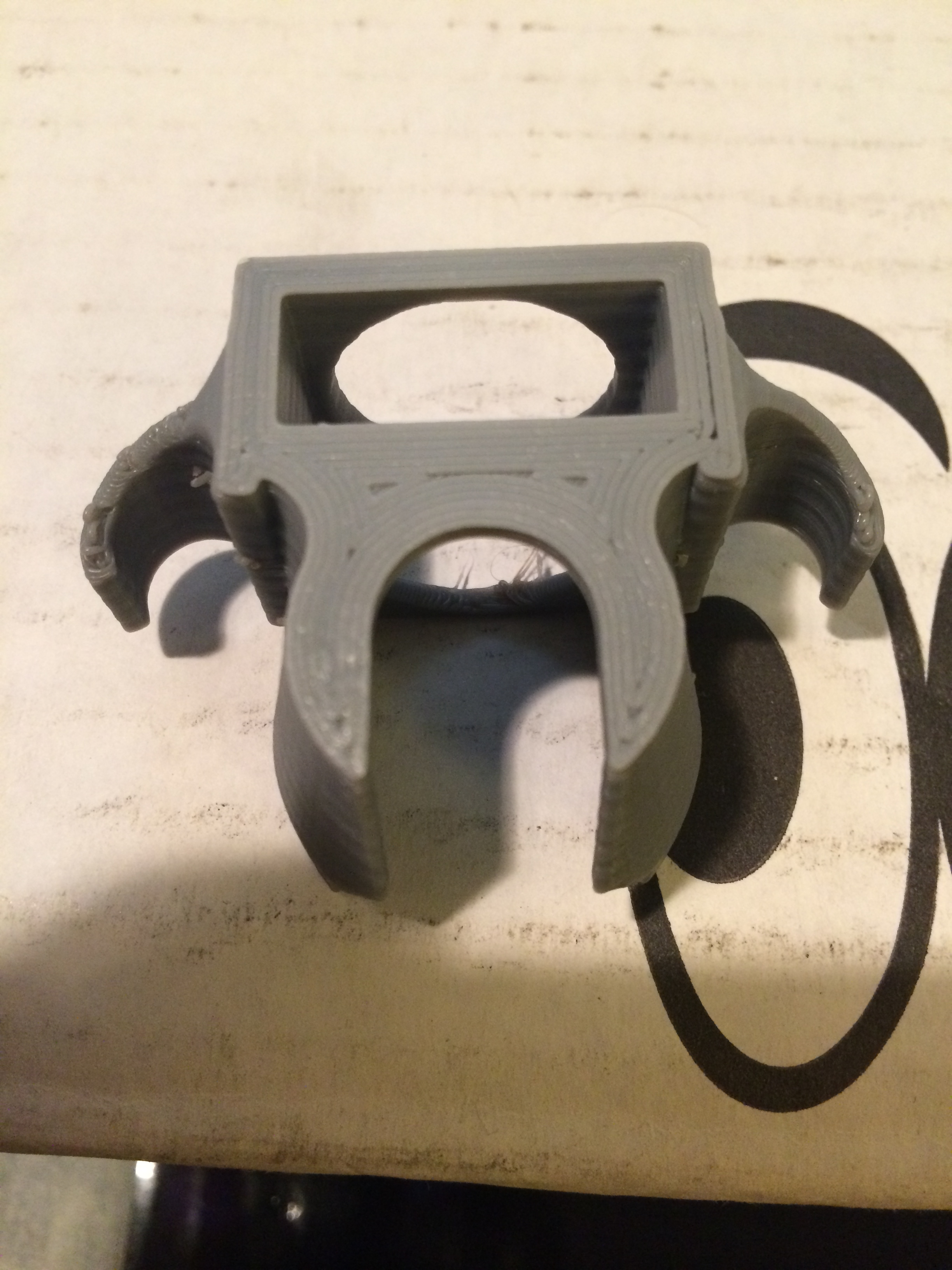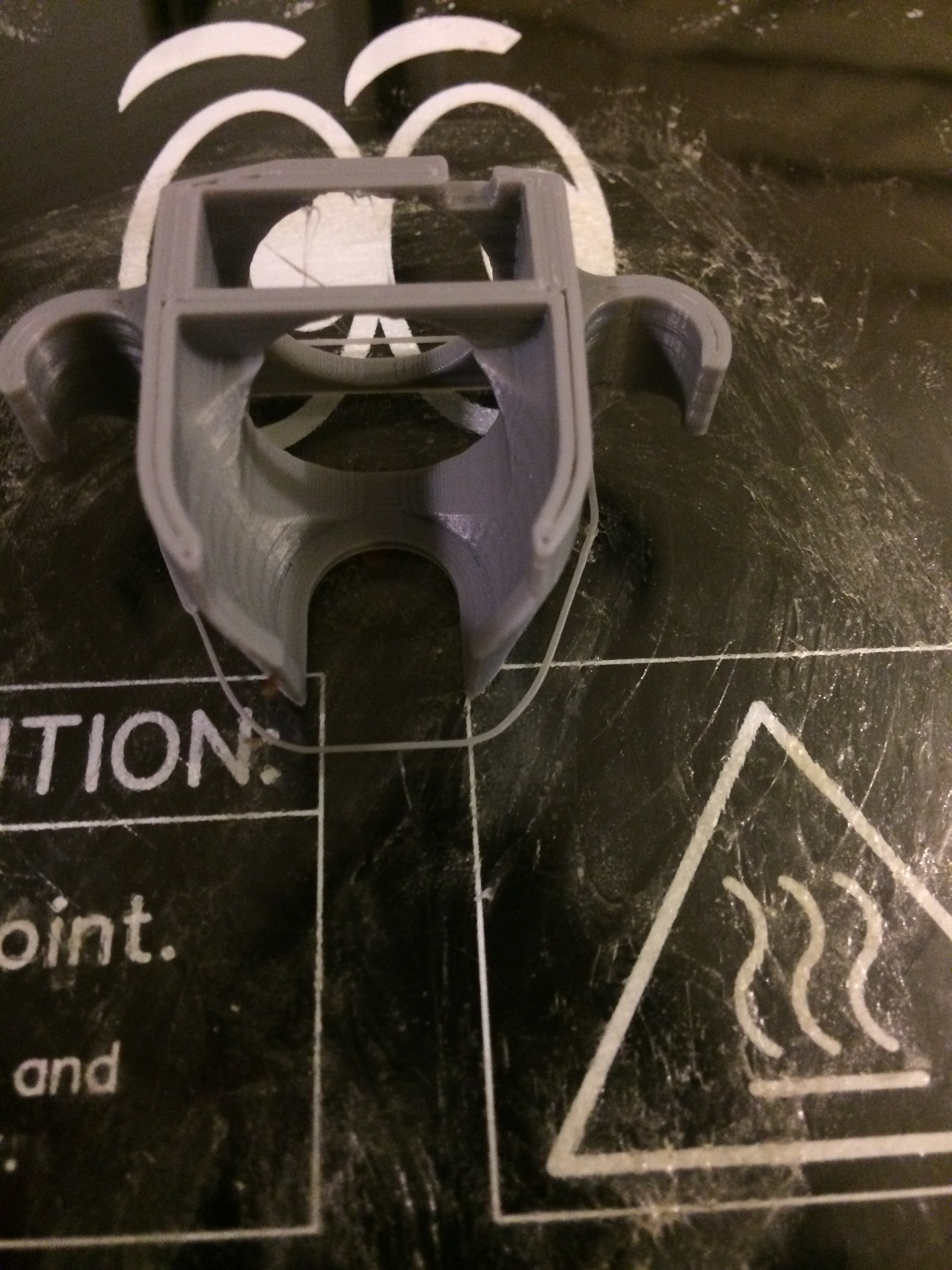 It came out well enough to do it's job, but it definitely has its flaws that I wouldn't want to see in my future prints. I've provided plenty of images, I hope you guys will pick over them and maybe offer up suggestions to get rid of some of the flaws like the spaces in the walls, the unflat base, and the strangeness in the bridges and overhangs. Also, my printer dribbles a lot before printing. I sit there and pick the excess extrusions off just before the printer goes into action so its not dragging around extra plastic. Is there anyway of stopping this? My first goal is to enclose the work space. It doesn't need to be heated, I'd just like to protect the print from drafts and myself from the smell.