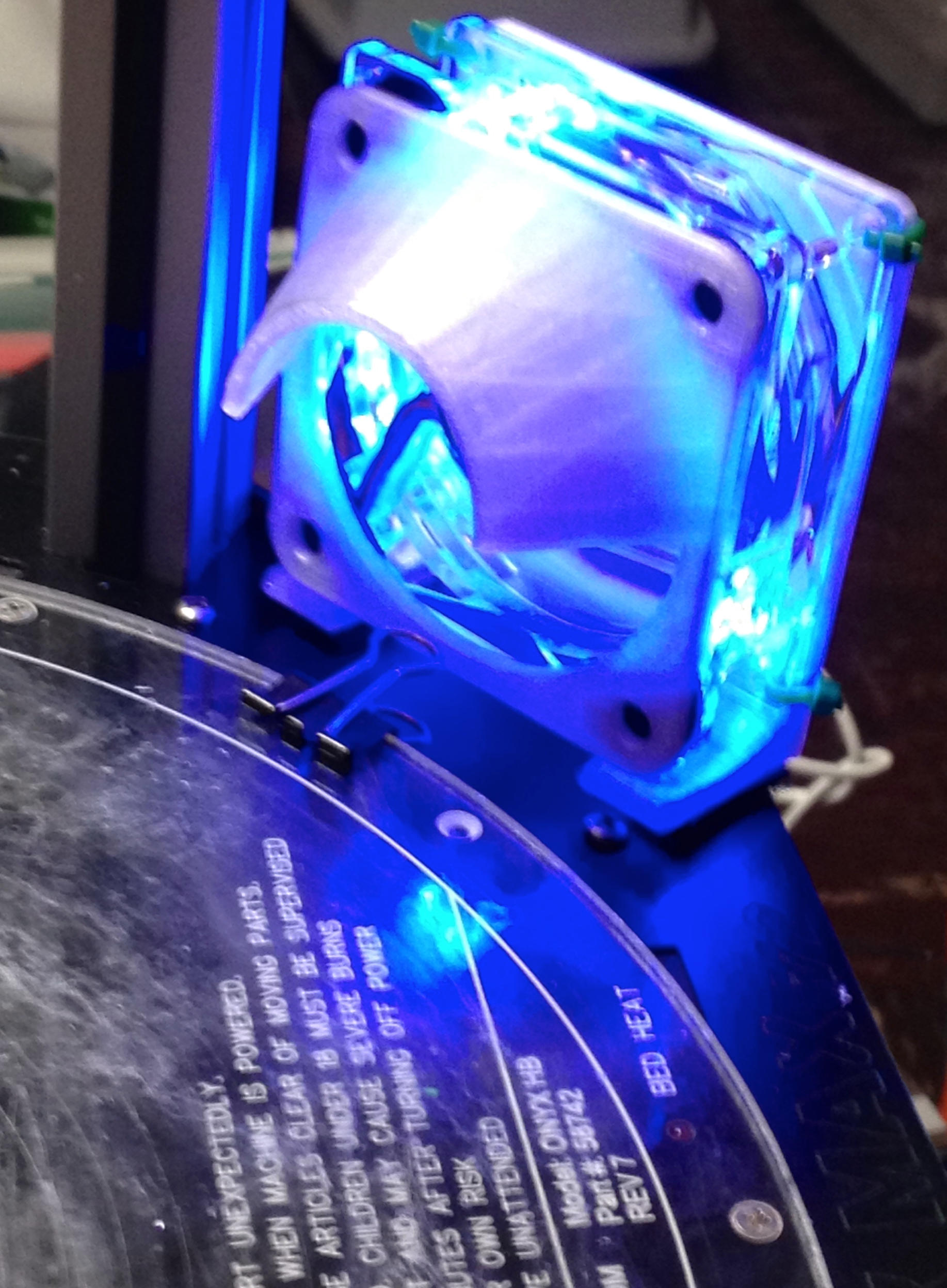 I attached the fans with Velcro so I can move if needed.I routed the wiring under the base, it currently comes out where the lexan piece bends out a bit from the bottom base. I think I'm going to clean up the wiring and wire them to my existing layer fan wiring today.I tried several configurations before I found this, it seems to work really well so far.. Note: on the 80mm fan shroud,not my design, the holes don't match up perfectly so I used doubles stick tape.