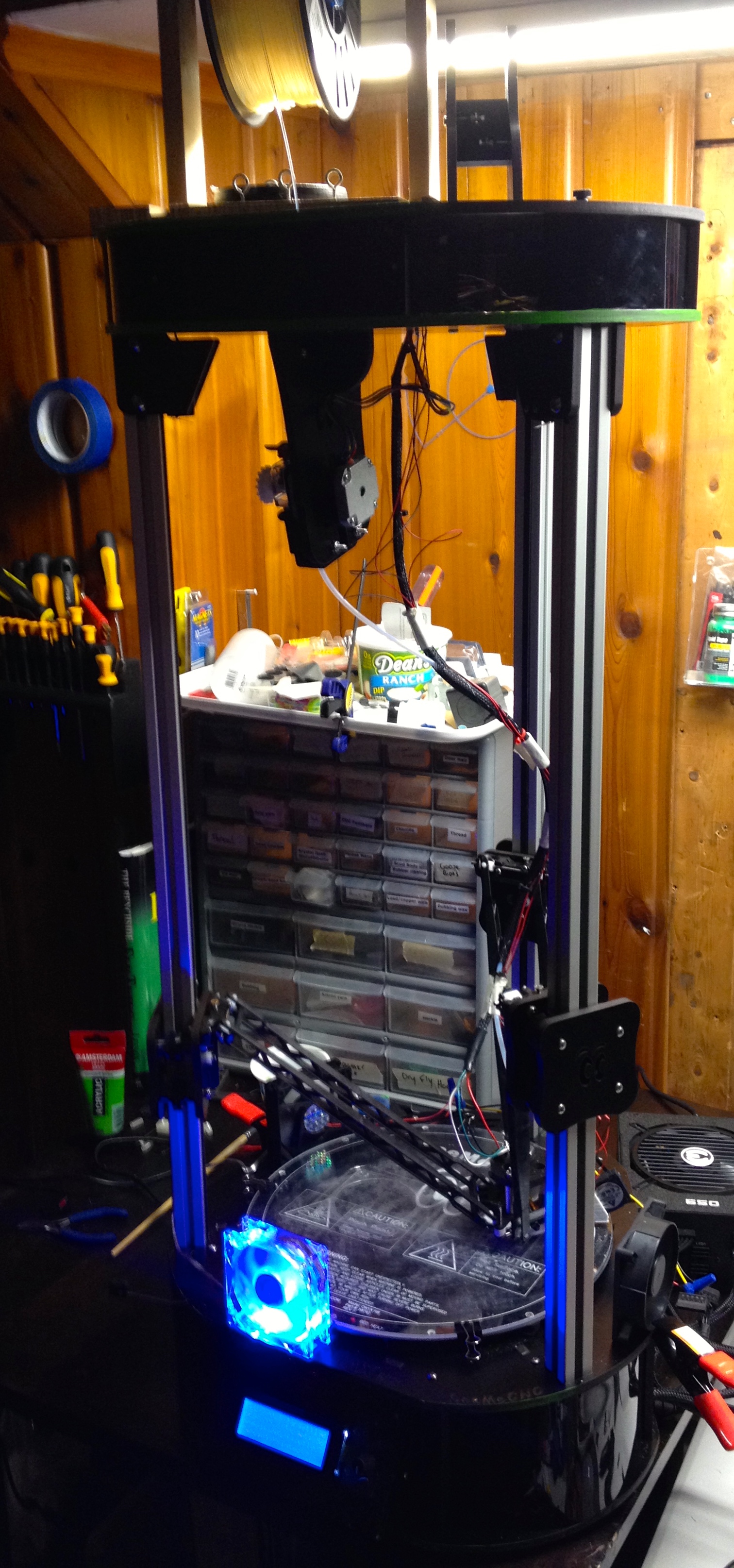 Machines- Rostock Max v2 with E3D v6, Corsair 750 power supply, PEI bed,injection molded carriages and new arms. Aluminum mount. X carve with x controller. Stratasys Uprint SE