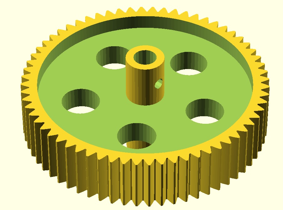 I wiped up a gear generator based on the MCAD 'involute_gears.scad' libarary