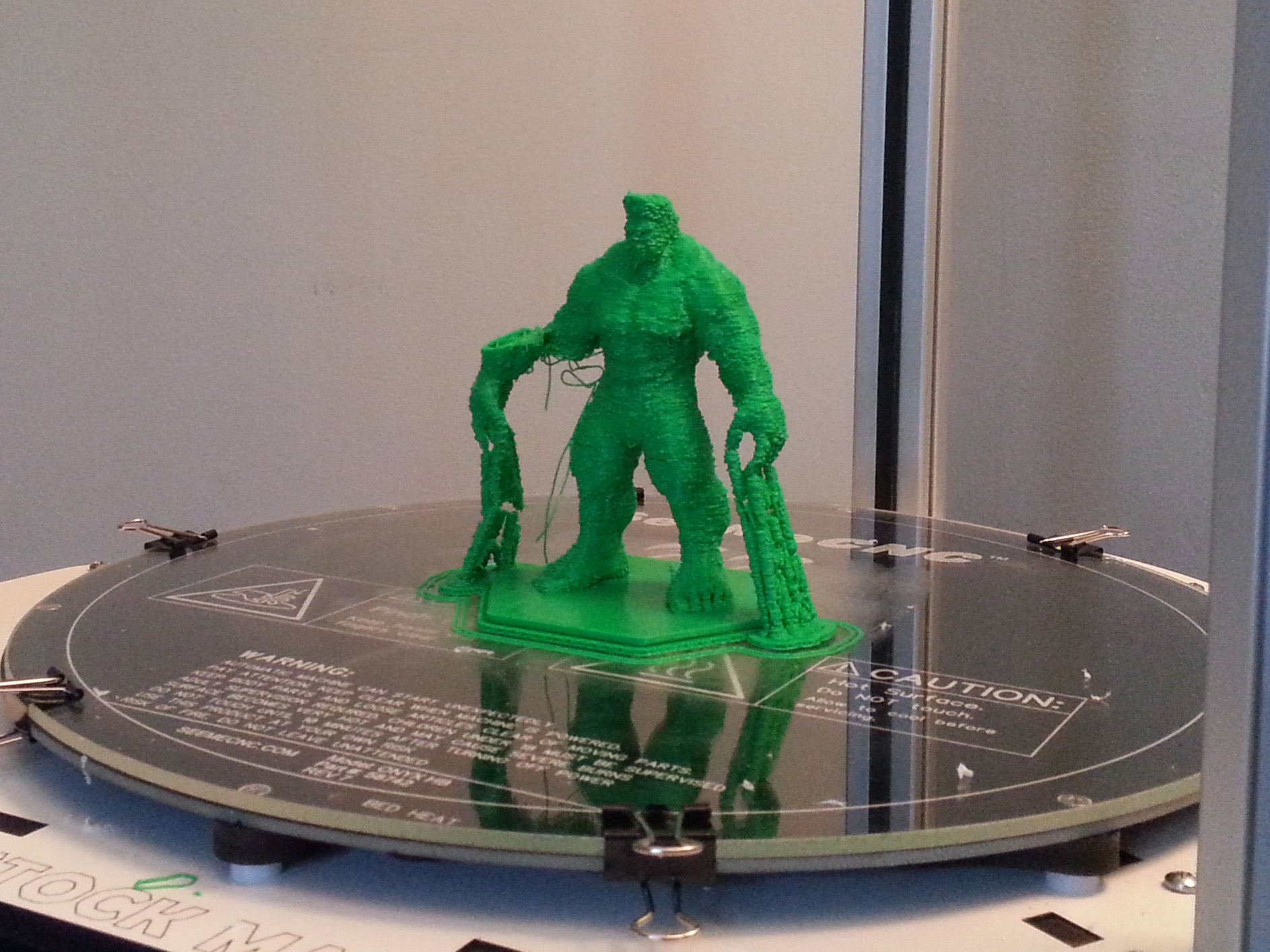 This was my first "big print" that ran more than an hour or so and also was a more complex object than the fan shrouds. I downloaded this object http://www.thingiverse.com/thing:576209 and used the default settings for MatterControl printing PLA downloaded from the SeeMeCNC site. I did have a 2mm raft and create support material enabled. Though I don't think that it generated and extra supports.
