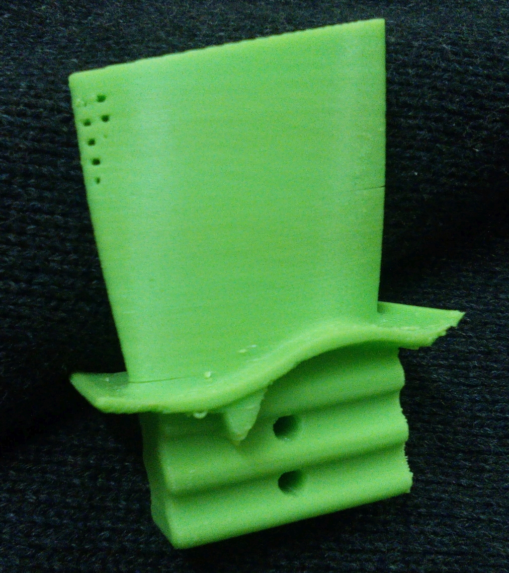Yes..this time i printed this turbine blade at 0.2mm layer resolution with PLA..just want to check how the cooling holes(1.2mm diameter) turns out to be..the picture of half done..