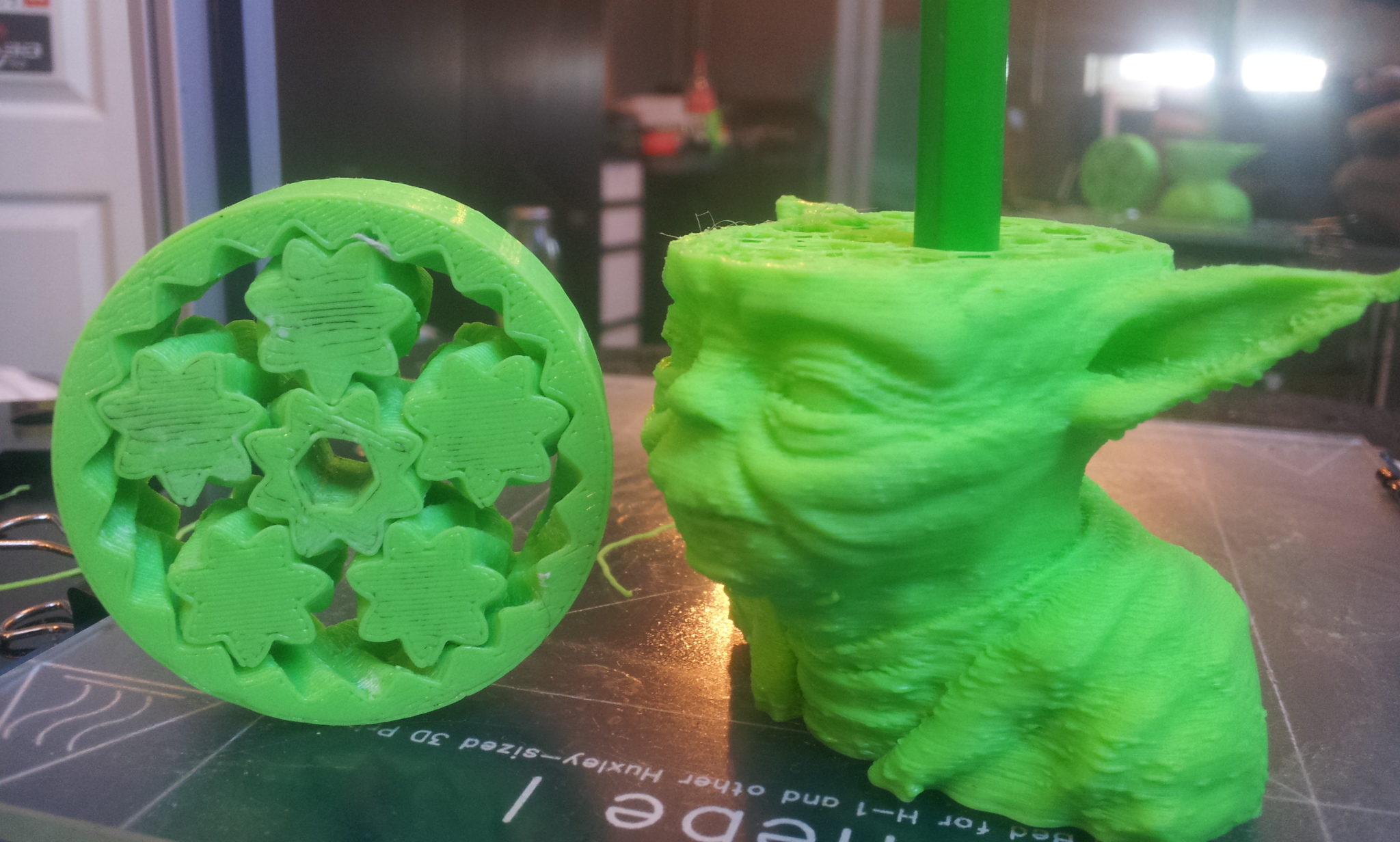 mhackney wrote:Here's the gear bearing I just finished. This is the first time I've been able to print one that actually works (and well!). That's primarily thanks to KISS since it had a logical print path and I didn't need to use retract to minimize blobing. I have a little more work to do to reduce the little stringing this part has. But, it broke free and rotated right off the plate.