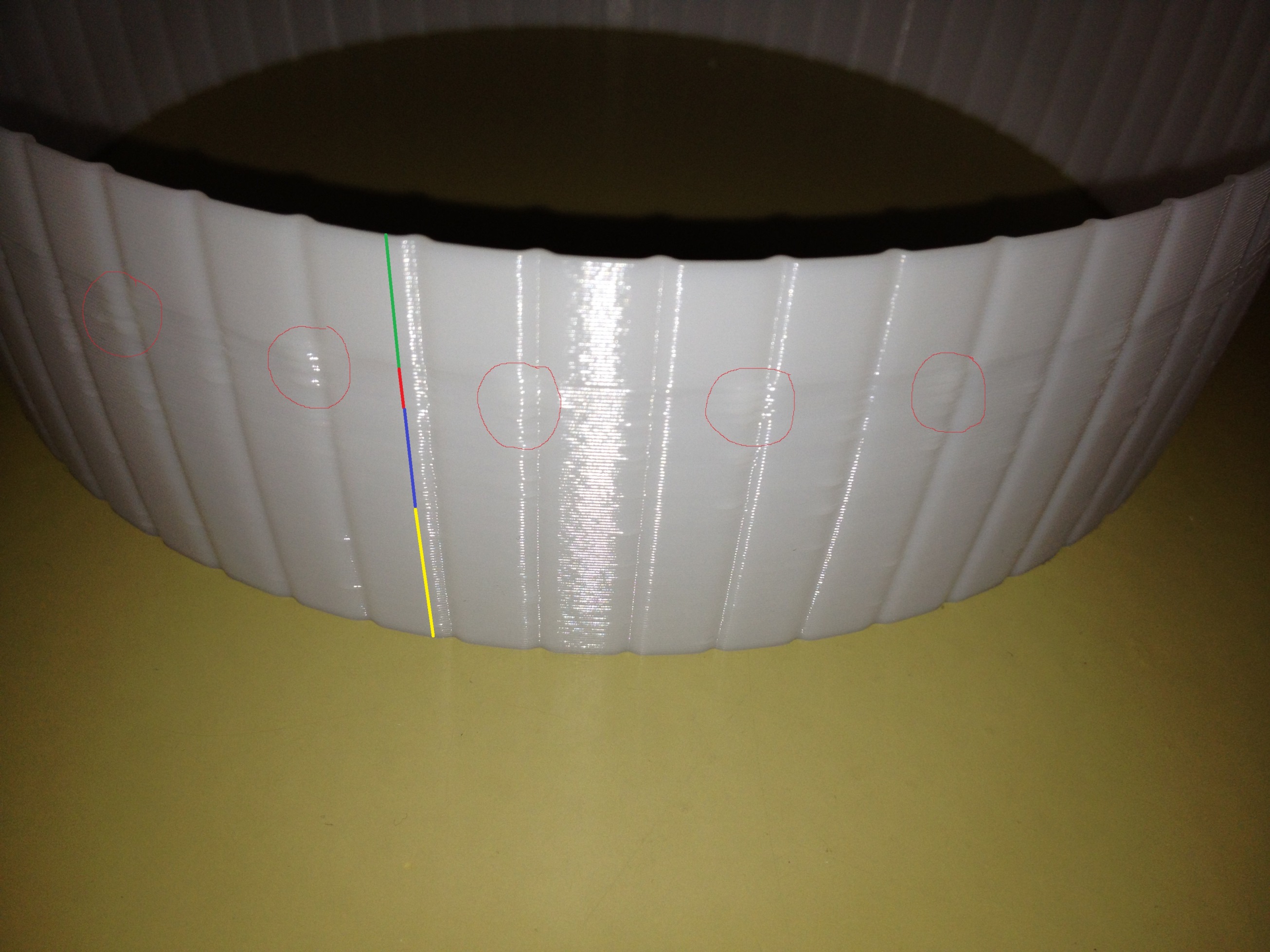 I would like you to notice that I have only marked every second ridge, with a red circle - the blobs are distinctly present on every second ridge. This is why I suspect the Rambo controller lagging behind, not doing the delta maths fast enough...?