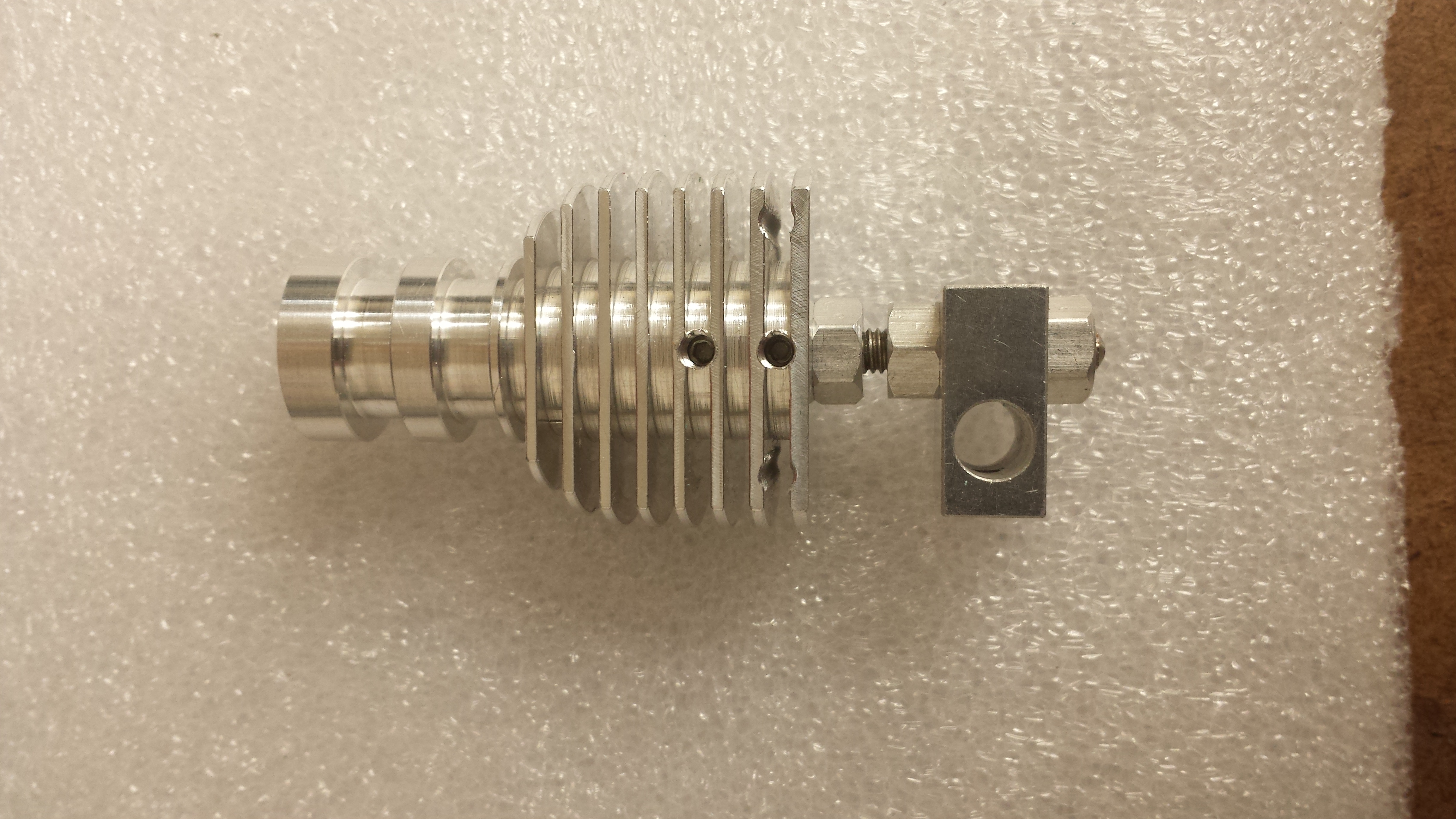 When building a v2 this way, be careful not to tighten the top set screw too much or you risk crushing the entry of the barrel. Having used a jam nut against the heat sink, the set screws can be omitted it desired.